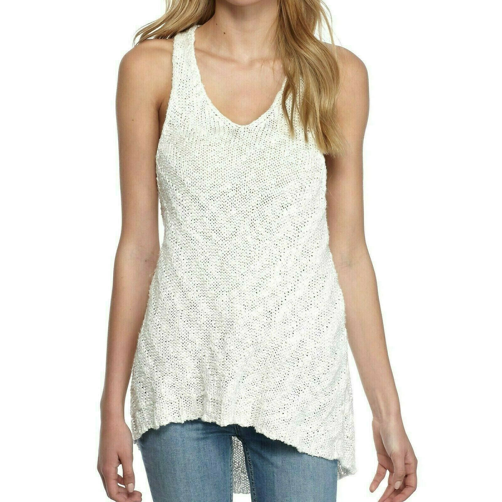 FREE PEOPLE Ivory Chevron Sweater Racerback Cotton Blend Tank Top S