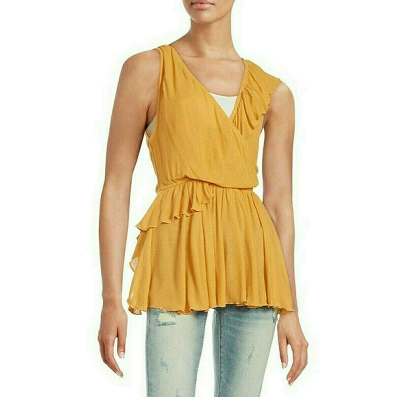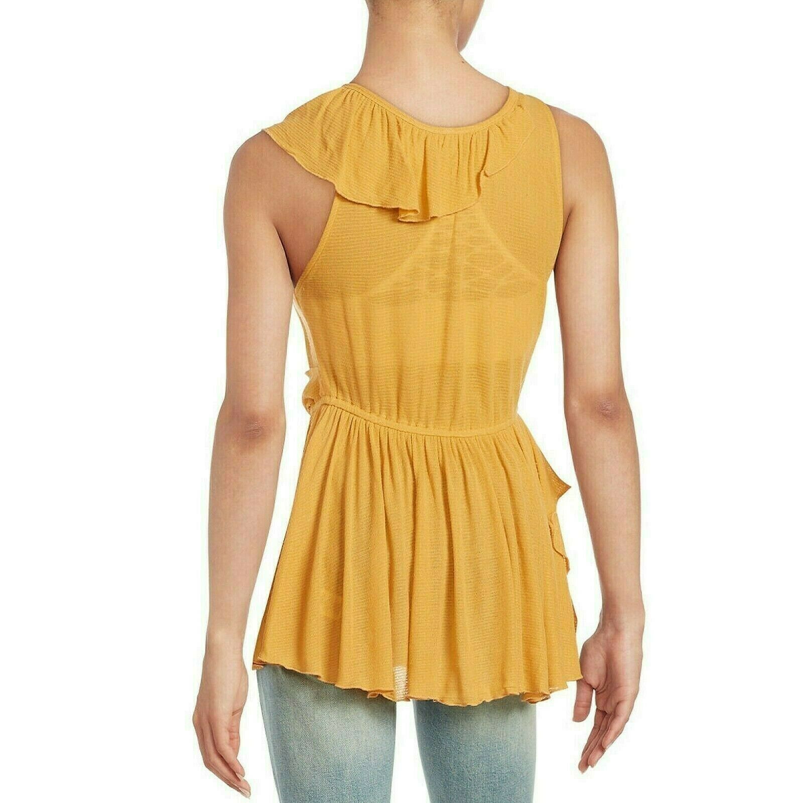 FREE PEOPLE Orange Rib Txtrd Float Away Asymmetrical Ruffle Surplice Tank Top XS