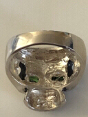 925 Silver skull ring green cz stones and similar items