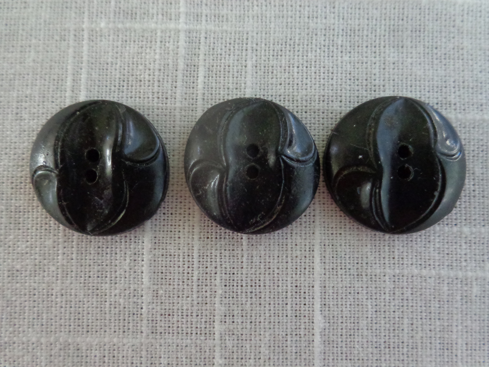 (#3799): Black Designed Domed Concave Center 2 Hole Vintage Buttons. They measure approximately inches in diameter to inches thick including the back. They are in good condition. Please see pix for a complete description.
