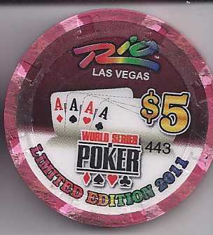 This is a $5 Casino Chip featuring the 2011 WORLD SERIES OF POKER at the RIO LAS VEGAS. A Limited Edition Chip!