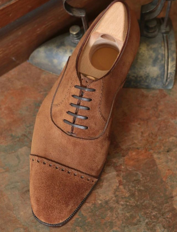 Brown Classic Suede Balmoral Cap Toe Lace Up Oxfords Formal Handmade Mens Shoes