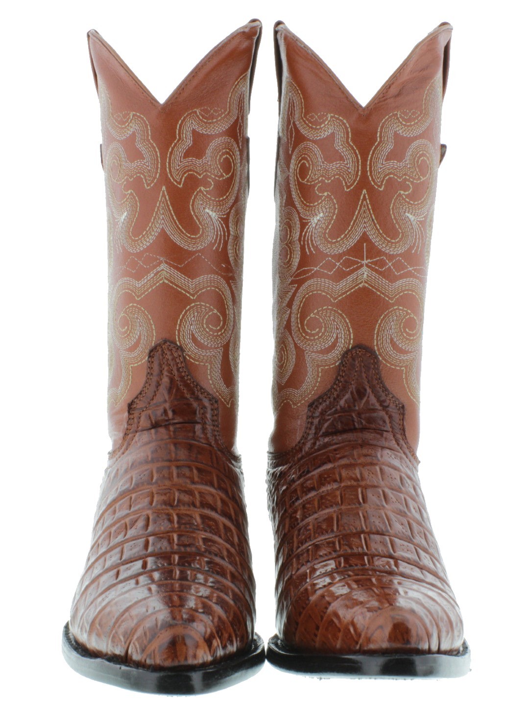 Mens Cognac Cowboy Boots Real Leather Embossed Crocodile Belly Western J Toe
