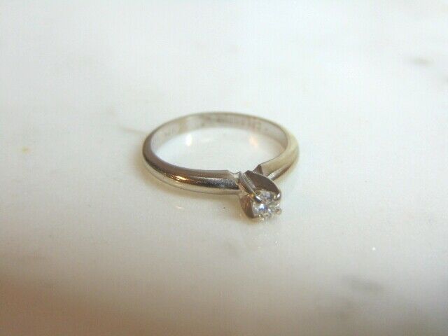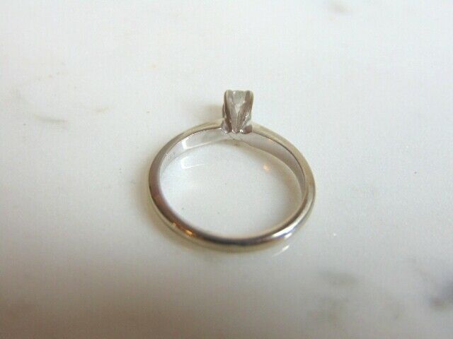 FOR SALE IS THIS WONDERFUL WOMEN'S 14K WHITE GOLD RING WITH A BEAUTIFUL .10 CT. ROUND DIAMOND. THE RING WEIGHS 1.9g. THE SIZE OF THE RING IS A 3.25. THE DIAMOND HAS A BEAUTIFUL SPARKLE TO IT, AND WOULD MAKE A LOVELY GIFT FOR THAT SOMEONE SPECIAL. ANY QUESTIONS PLEASE DO NOT HESITATE TO ASK. BE SURE TO CHECK OUT SOME OF MY OTHER GREAT ITEMS UP FOR SALE. THANK YOU.