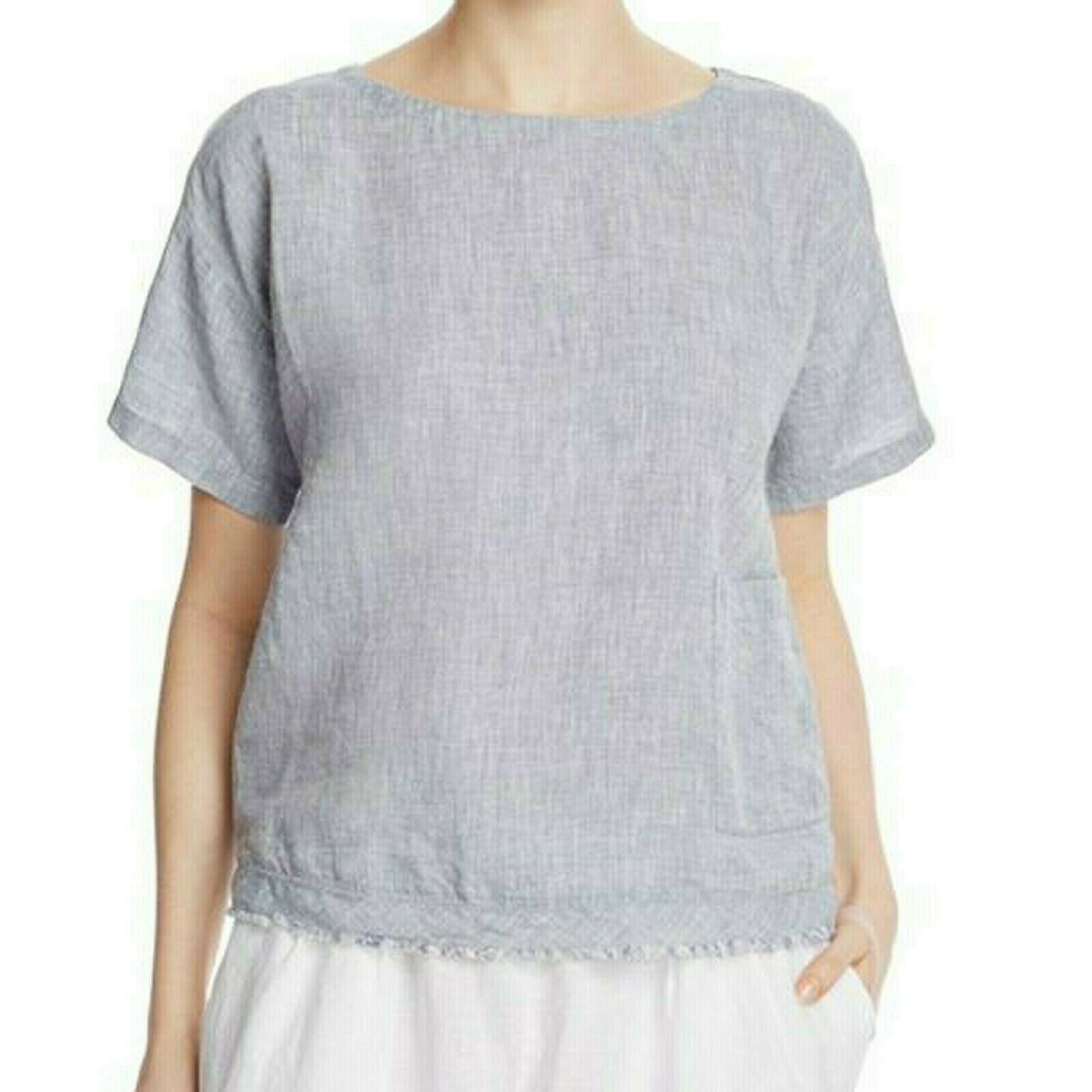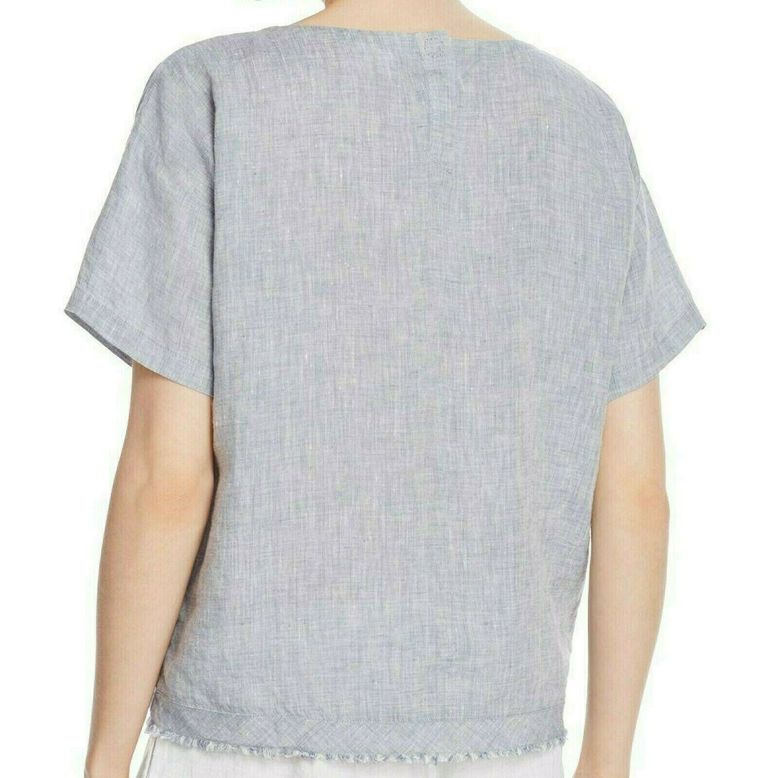 EILEEN FISHER Chambray Blue Yarn Dyed Organic Handkerchief Linen Top M