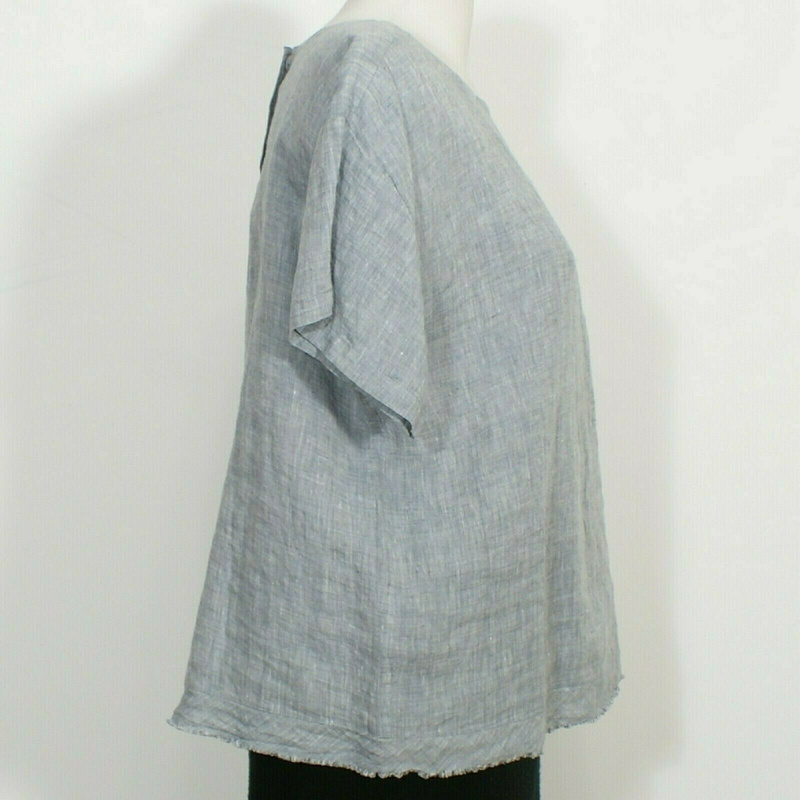 Blue Yarn Dyed Organic Handkerchief Linen Top M