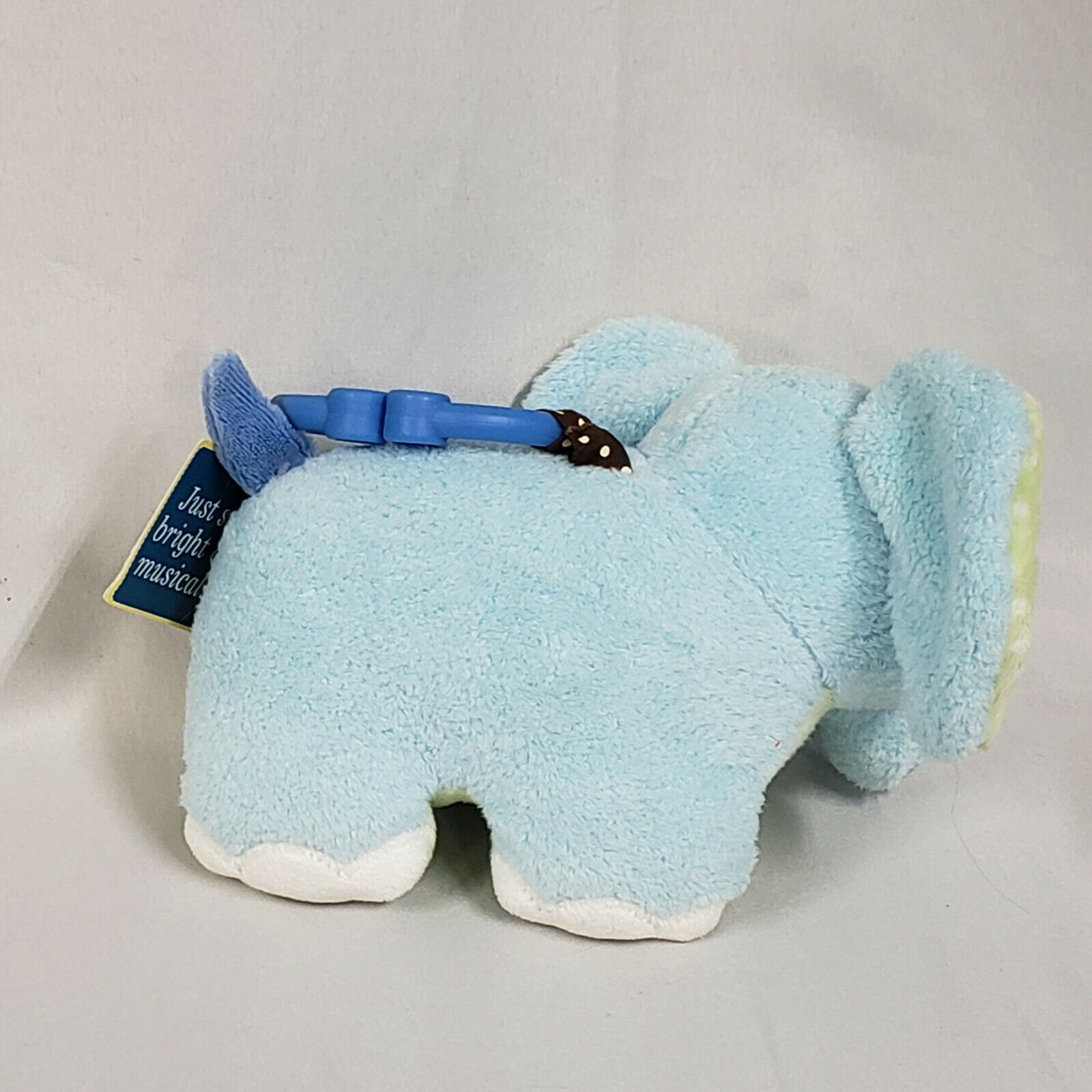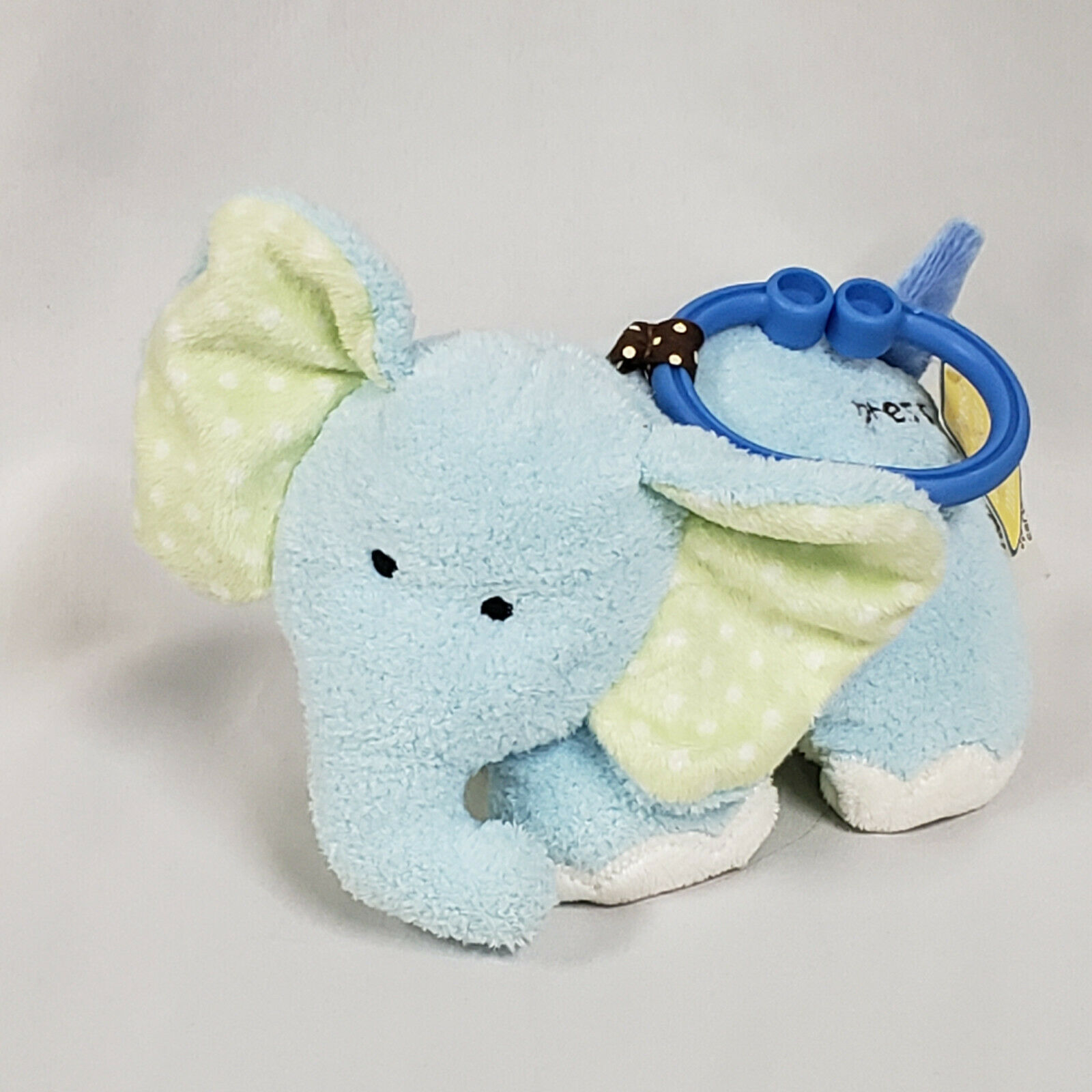 Just one year Blue green elephant plays non-musical 2009 lovey plush clip ring