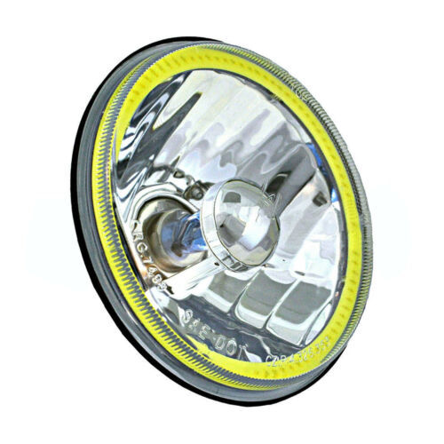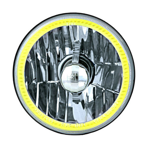 THIS IS A 5-3/4" 12V HIGH INTENSITY DISCHARGE SEMI-SEALED BEAM CRYSTAL CLEAR GLASS FACED - METAL BACKED CAR/TRUCK HEADLIGHT w/ WHITE COB SMD LED HALO RING