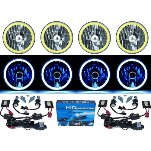LENS WITH A METAL HOUSING. THIS SET INCLUDES (4) HEADLIGHTS WITH (4) 6000K HID BULBS, (4)