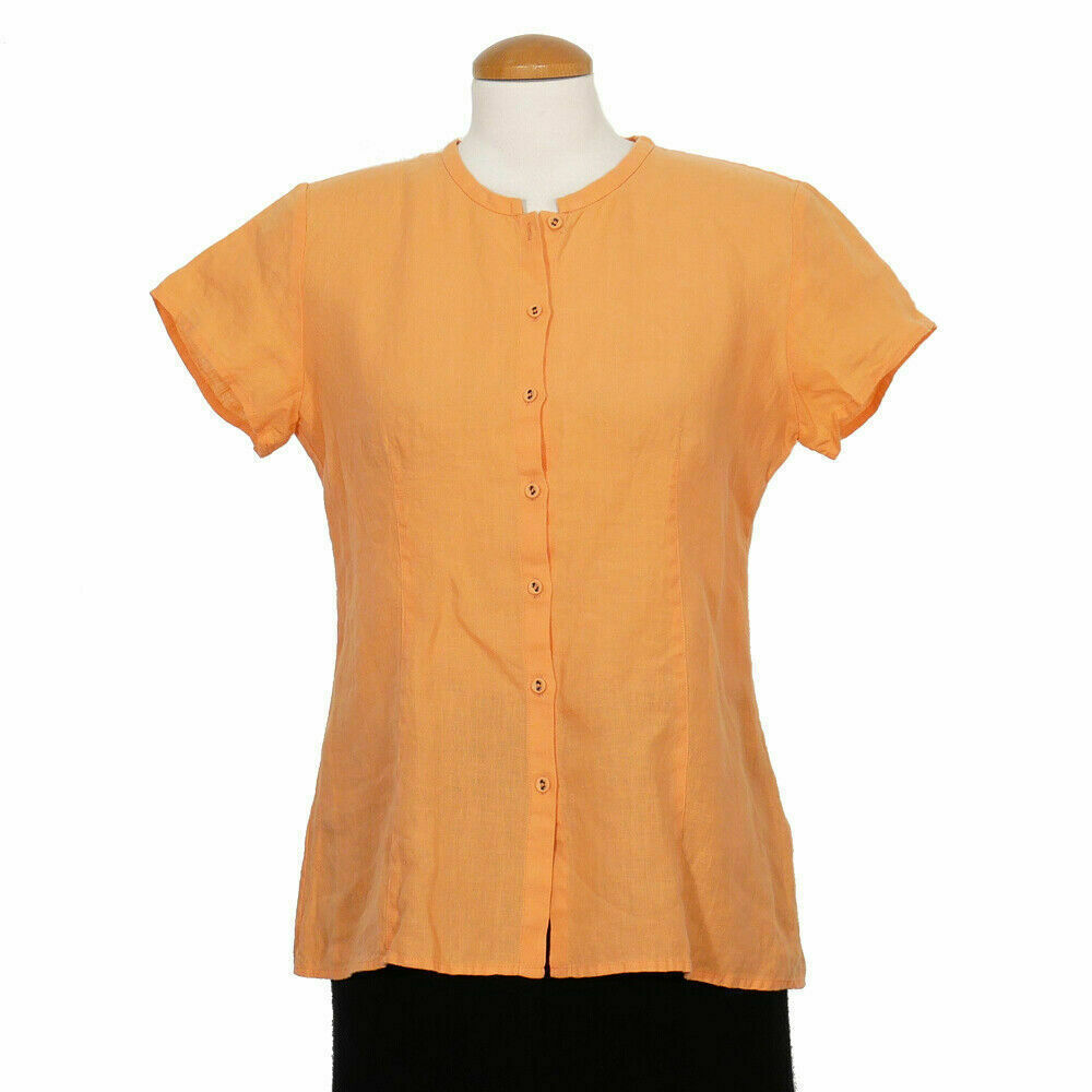 EILEEN FISHER Arabesque Orange Light Linen Shaped Button Front Shirt Top XS