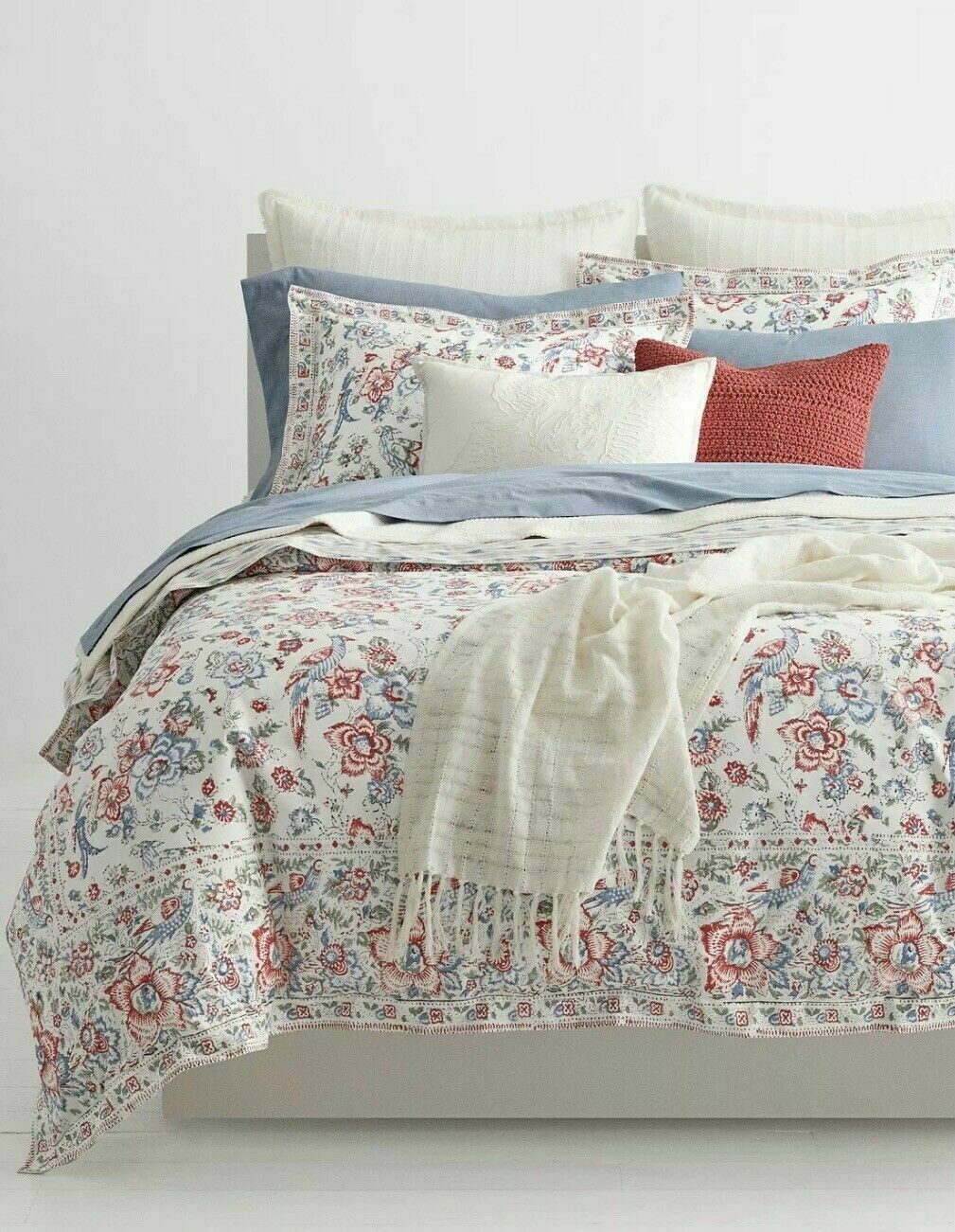 Ralph Lauren LUCIE FLORAL BIRD CREAM MULTI COLORED 10pc F/Q DUVET SET NIP $870