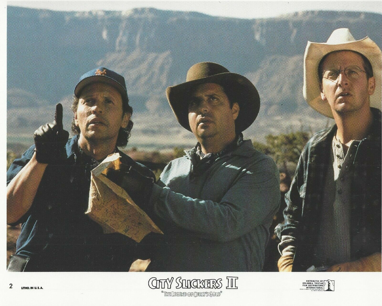 The City Slickers II fans! This item is your calling featuring an actual authentic Lobby Card distributed from the movie production company to a movie theater! Movie: City Slickers II mdash; Starring: Billy Crystal, Daniel Stern, Jon Lovitz, Jack Palance mdash; 8x10 Photo mdash; Copyright Year: 1994 mdash; Lobby Card Size: 8" x 10" mdash; NOT A Bootleg or Reproduction *Please note this item has been scanned and there may be scan lines in the graphic but there are not any lines in the actual lobby card itself. Please disregard any lines that appear in the image. -Guaranteed ORIGINAL THEATRICAL LOBBY CARD PRODUCED FOR MOVIE THEATERS AROUND TIME OF RELEASE OF THE MOVIE. CONDITION: Poster is in -Vintage Condition- and of investment quality. This ORIGINAL lobby card could have been used at a movie theater or may not have been. It may or may not have staple marks at corners, wrinkling, slight tears around edges, rounded corners, etc. from being originally displayed at a movie theater or overtime natural wear. Colors and Detail are outstanding for this day amp; age, photos may not completely pick up high quality of coloring and inks until you see in hand. -PLEASE MAKE YOUR PERSONAL ASSESSMENT OF THE CONDITION OF THIS POSTER FROM THE PHOTOS PROVIDED IN THE LISTING. The above condition issues are not exact for this poster so please take a look at the photos to determine the condition. We ship our items very protected and safe in plastic top loaders, so they are safe and secure when in the mail.