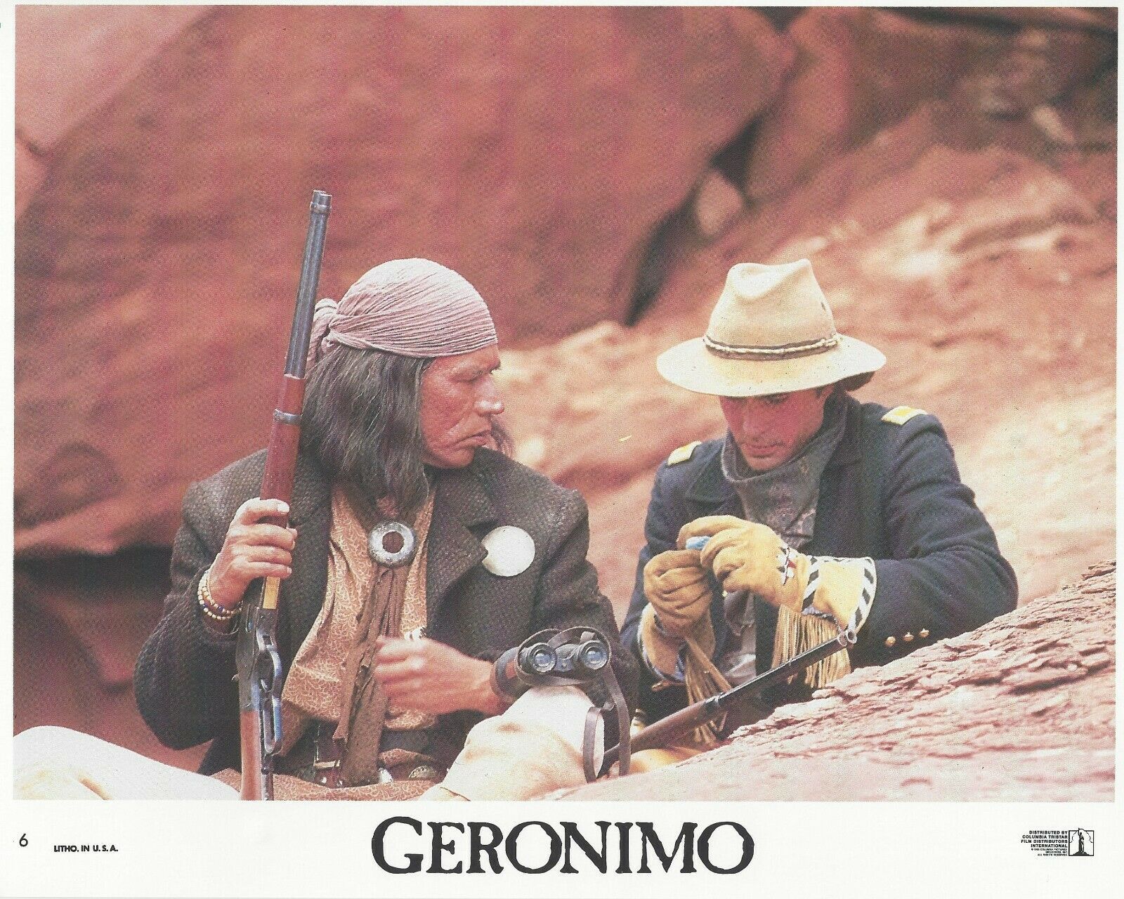 The Geronimo fans! This item is your calling featuring an actual authentic Lobby Card distributed from the movie production company to a movie theater!