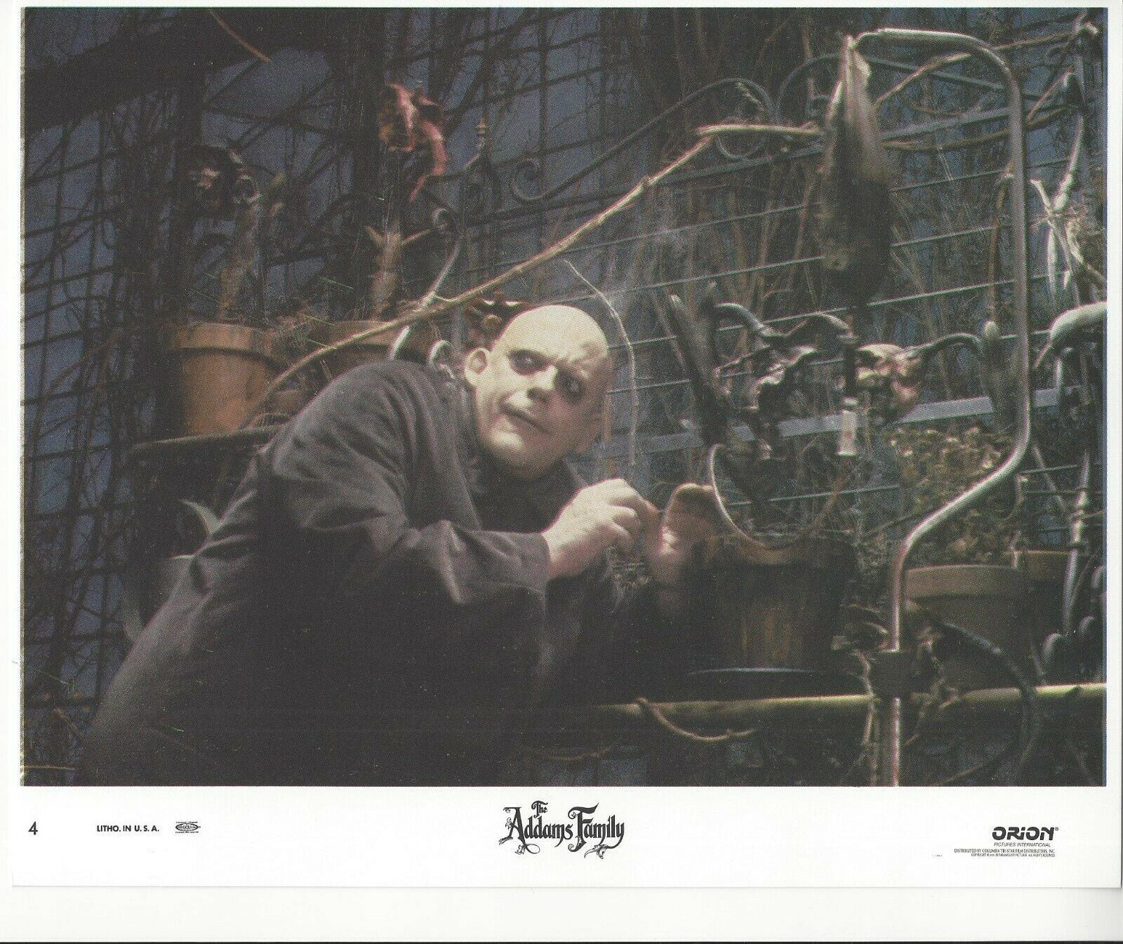 Addams Family fans! This item is your calling featuring an actual authentic Lobby Card distributed from the movie production company to a movie theater! Movie: Addams Family mdash; Starring: Anjelica Hustin, Raul Julia, Christopher Lloyd mdash; 8x10 Photo mdash; Copyright Year: 1991 mdash; Lobby Card Size: 8" x 10" mdash; NOT A Bootleg or Reproduction *Please note this item has been scanned and there may be scan lines in the graphic but there are not any lines in the actual lobby card itself. Please disregard any lines that appear in the image. -Guaranteed ORIGINAL THEATRICAL LOBBY CARD PRODUCED FOR MOVIE THEATERS AROUND TIME OF RELEASE OF THE MOVIE. CONDITION: Poster is in -Vintage Condition- and of investment quality. This ORIGINAL lobby card could have been used at a movie theater or may not have been. It may or may not have staple marks at corners, wrinkling, slight tears around edges, rounded corners, etc. from being originally displayed at a movie theater or overtime natural wear. Colors and Detail are outstanding for this day amp; age, photos may not completely pick up high quality of coloring and inks until you see in hand. -PLEASE MAKE YOUR PERSONAL ASSESSMENT OF THE CONDITION OF THIS POSTER FROM THE PHOTOS PROVIDED IN THE LISTING. The above condition issues are not exact for this poster so please take a look at the photos to determine the condition. We ship our items very protected and safe in plastic top loaders, so they are safe and secure when in the mail.