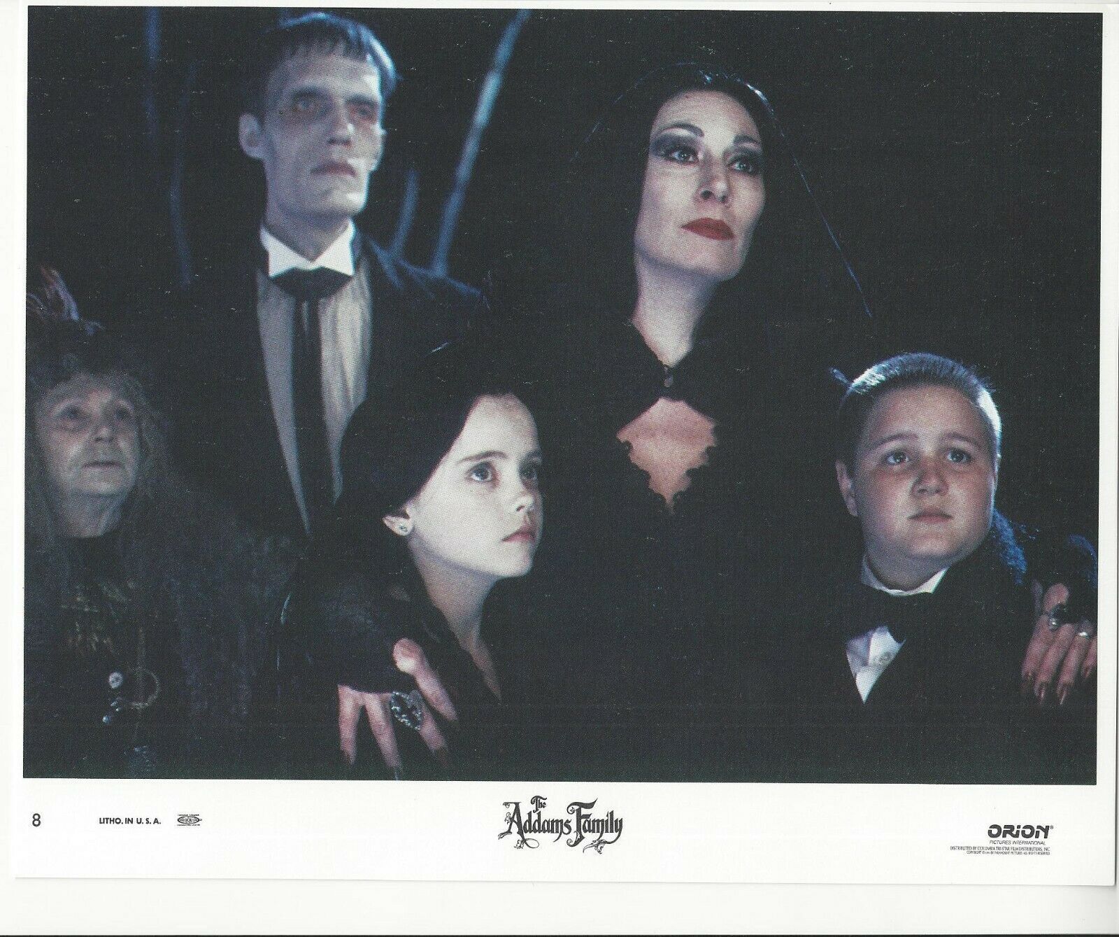 Addams Family fans! This item is your calling featuring an actual authentic Lobby Card distributed from the movie production company to a movie theater! Movie: Addams Family mdash; Starring: Anjelica Hustin, Raul Julia, Christopher Lloyd mdash; 8x10 Photo mdash; Copyright Year: 1991 mdash; Lobby Card Size: 8" x 10" mdash; NOT A Bootleg or Reproduction *Please note this item has been scanned and there may be scan lines in the graphic but there are not any lines in the actual lobby card itself. Please disregard any lines that appear in the image. -Guaranteed ORIGINAL THEATRICAL LOBBY CARD PRODUCED FOR MOVIE THEATERS AROUND TIME OF RELEASE OF THE MOVIE. CONDITION: Poster is in -Vintage Condition- and of investment quality. This ORIGINAL lobby card could have been used at a movie theater or may not have been. It may or may not have staple marks at corners, wrinkling, slight tears around edges, rounded corners, etc. from being originally displayed at a movie theater or overtime natural wear. Colors and Detail are outstanding for this day amp; age, photos may not completely pick up high quality of coloring and inks until you see in hand. -PLEASE MAKE YOUR PERSONAL ASSESSMENT OF THE CONDITION OF THIS POSTER FROM THE PHOTOS PROVIDED IN THE LISTING. The above condition issues are not exact for this poster so please take a look at the photos to determine the condition. We ship our items very protected and safe in plastic top loaders, so they are safe and secure when in the mail.