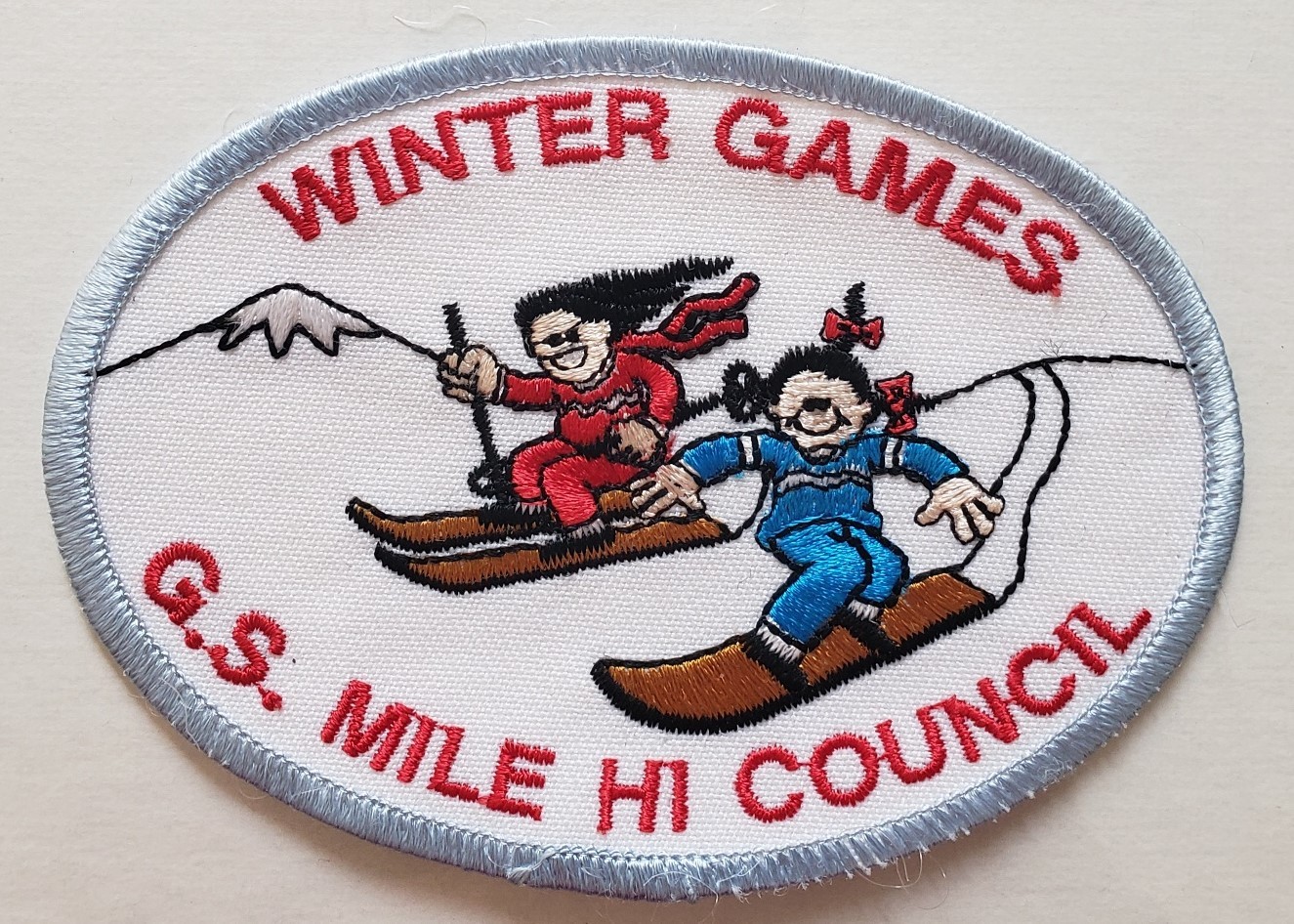 This is a vintage patch for the Winter Games - Girl Scouts Mile Hi Council
