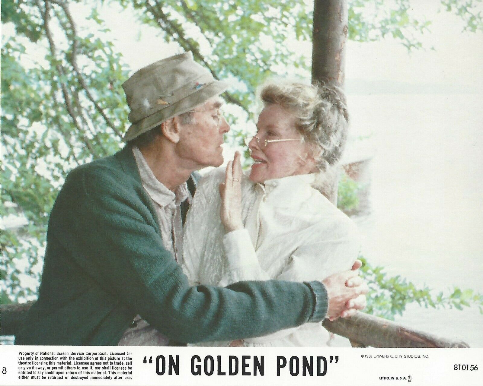 On Golden Pond fans! This item is your calling featuring an actual authentic Lobby Card distributed from the movie production company to a movie theater! Movie: On Golden Pond mdash; Starring: Henry Fonda, Katharine Hepburn, Jane Fonda, Doug Mckeon, Dabney Coleman mdash; 8x10 Photo mdash; Copyright Year: 1981 mdash; Lobby Card Size: 8" x 10" mdash; NOT A Bootleg or Reproduction *Please note this item has been scanned and there may be scan lines in the graphic but there are not any lines in the actual lobby card itself. Please disregard any lines that appear in the image. -Guaranteed ORIGINAL THEATRICAL LOBBY CARD PRODUCED FOR MOVIE THEATERS AROUND TIME OF RELEASE OF THE MOVIE. CONDITION: Poster is in -Vintage Condition- and of investment quality. This ORIGINAL lobby card could have been used at a movie theater or may not have been. It may or may not have staple marks at corners, wrinkling, slight tears around edges, rounded corners, etc. from being originally displayed at a movie theater or overtime natural wear. Colors and Detail are outstanding for this day amp; age, photos may not completely pick up high quality of coloring and inks until you see in hand. -PLEASE MAKE YOUR PERSONAL ASSESSMENT OF THE CONDITION OF THIS POSTER FROM THE PHOTOS PROVIDED IN THE LISTING. The above condition issues are not exact for this poster so please take a look at the photos to determine the condition. We ship our items very protected and safe in plastic top loaders, so they are safe and secure when in the mail.
