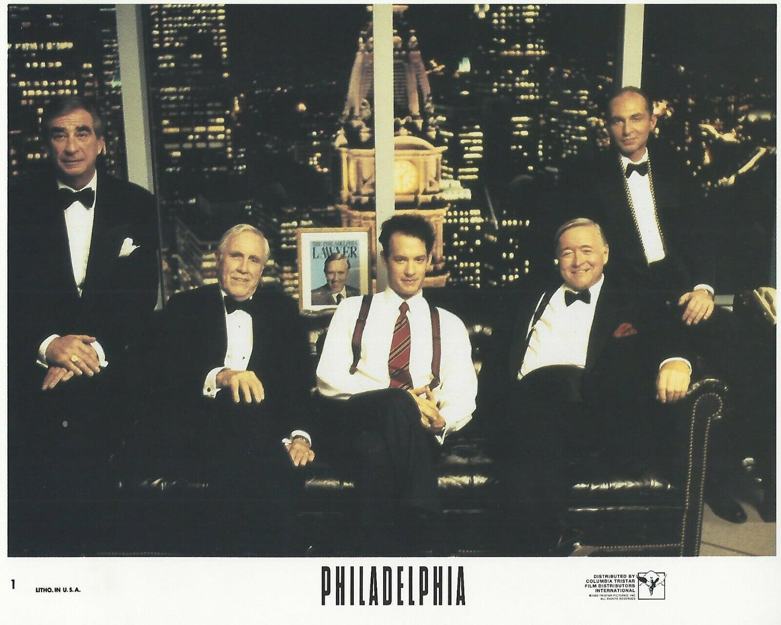 Philadelphia fans! This item is your calling featuring an actual authentic Lobby Card distributed from the movie production company to a movie theater! Movie: Philadelphia mdash; Starring: Tom Hanks, Denzel Washington, Jason Robards, Mary Steenburgen and Antonio Banderas mdash; 8x10 Photo mdash; Copyright Year: 1993 mdash; Lobby Card Size: 8" x 10" mdash; NOT A Bootleg or Reproduction *Please note this item has been scanned and there may be scan lines in the graphic but there are not any lines in the actual lobby card itself. Please disregard any lines that appear in the image. -Guaranteed ORIGINAL THEATRICAL LOBBY CARD PRODUCED FOR MOVIE THEATERS AROUND TIME OF RELEASE OF THE MOVIE. CONDITION: Poster is in -Vintage Condition- and of investment quality. This ORIGINAL lobby card could have been used at a movie theater or may not have been. It may or may not have staple marks at corners, wrinkling, slight tears around edges, rounded corners, etc. from being originally displayed at a movie theater or overtime natural wear. Colors and Detail are outstanding for this day amp; age, photos may not completely pick up high quality of coloring and inks until you see in hand. -PLEASE MAKE YOUR PERSONAL ASSESSMENT OF THE CONDITION OF THIS POSTER FROM THE PHOTOS PROVIDED IN THE LISTING. The above condition issues are not exact for this poster so please take a look at the photos to determine the condition. We ship our items very protected and safe in plastic top loaders, so they are safe and secure when in the mail.