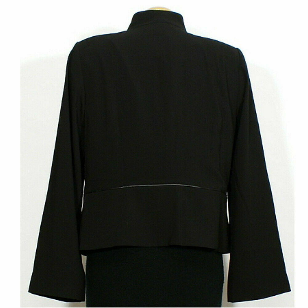 EILEEN FISHER Black Tropical Suiting Eco Poly Leather Trim Jacket L