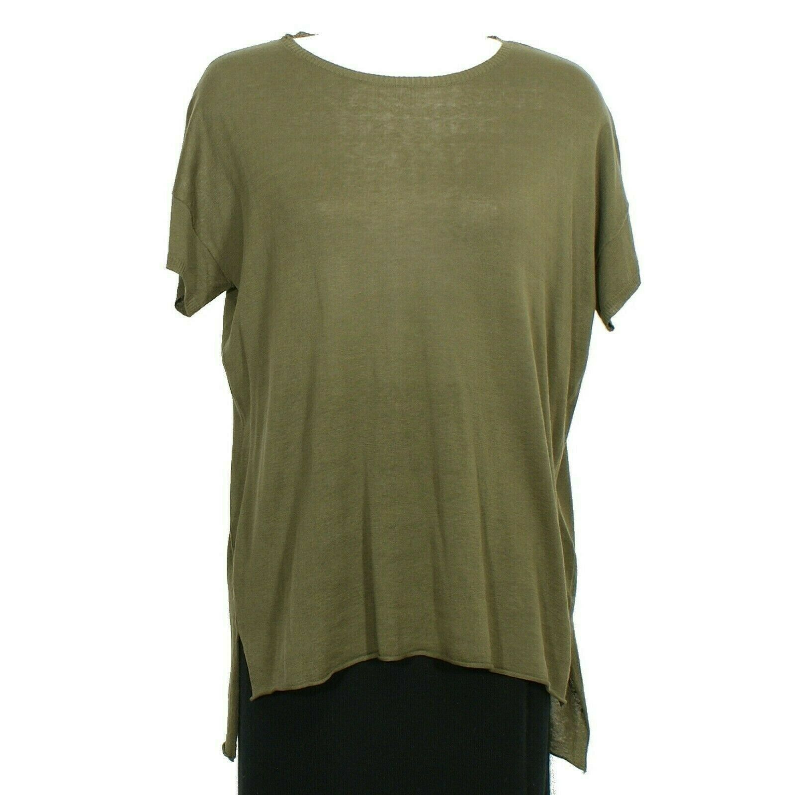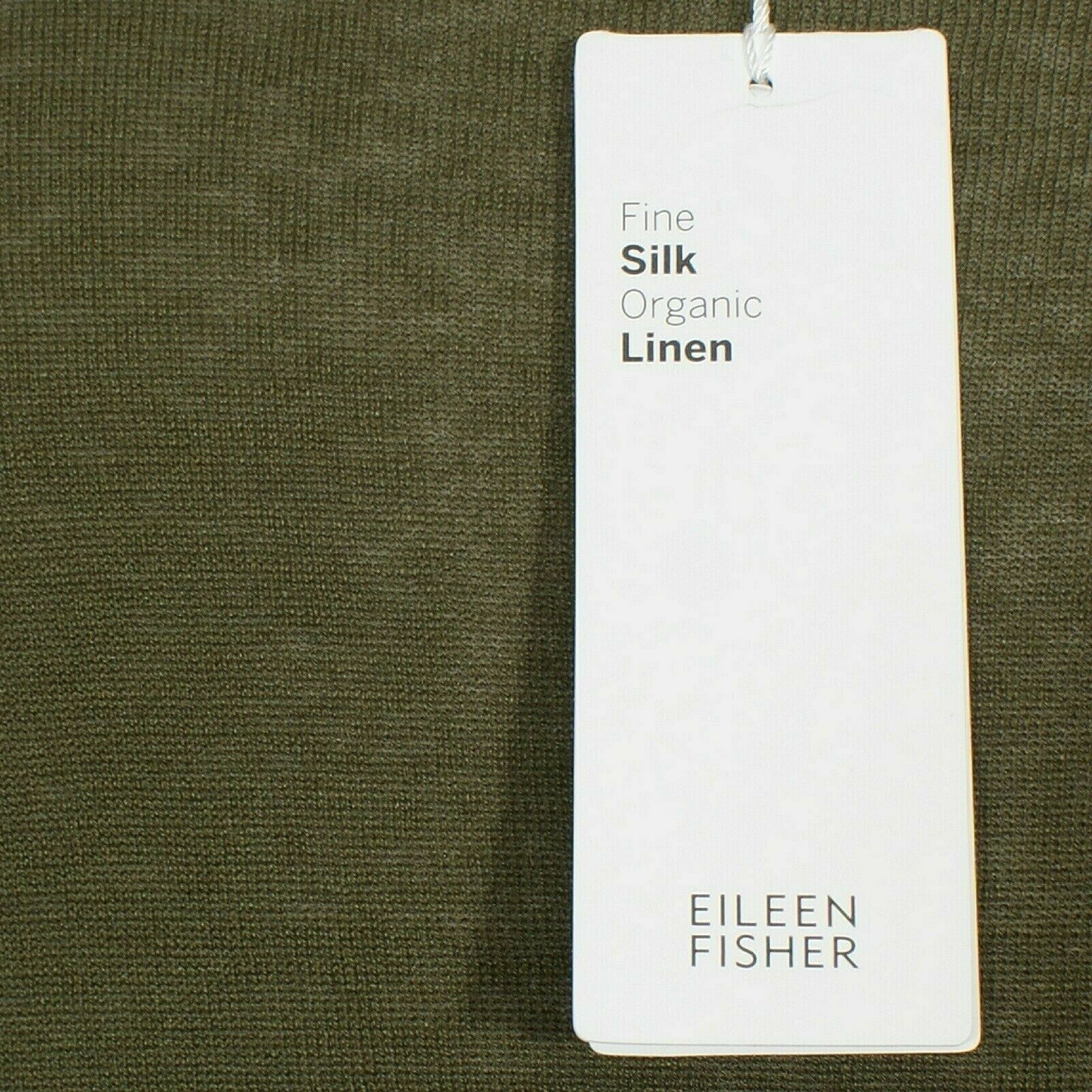 EILEEN FISHER Olive Green Fine Silk Organic Linen Knit Tunic Sweater Top XS