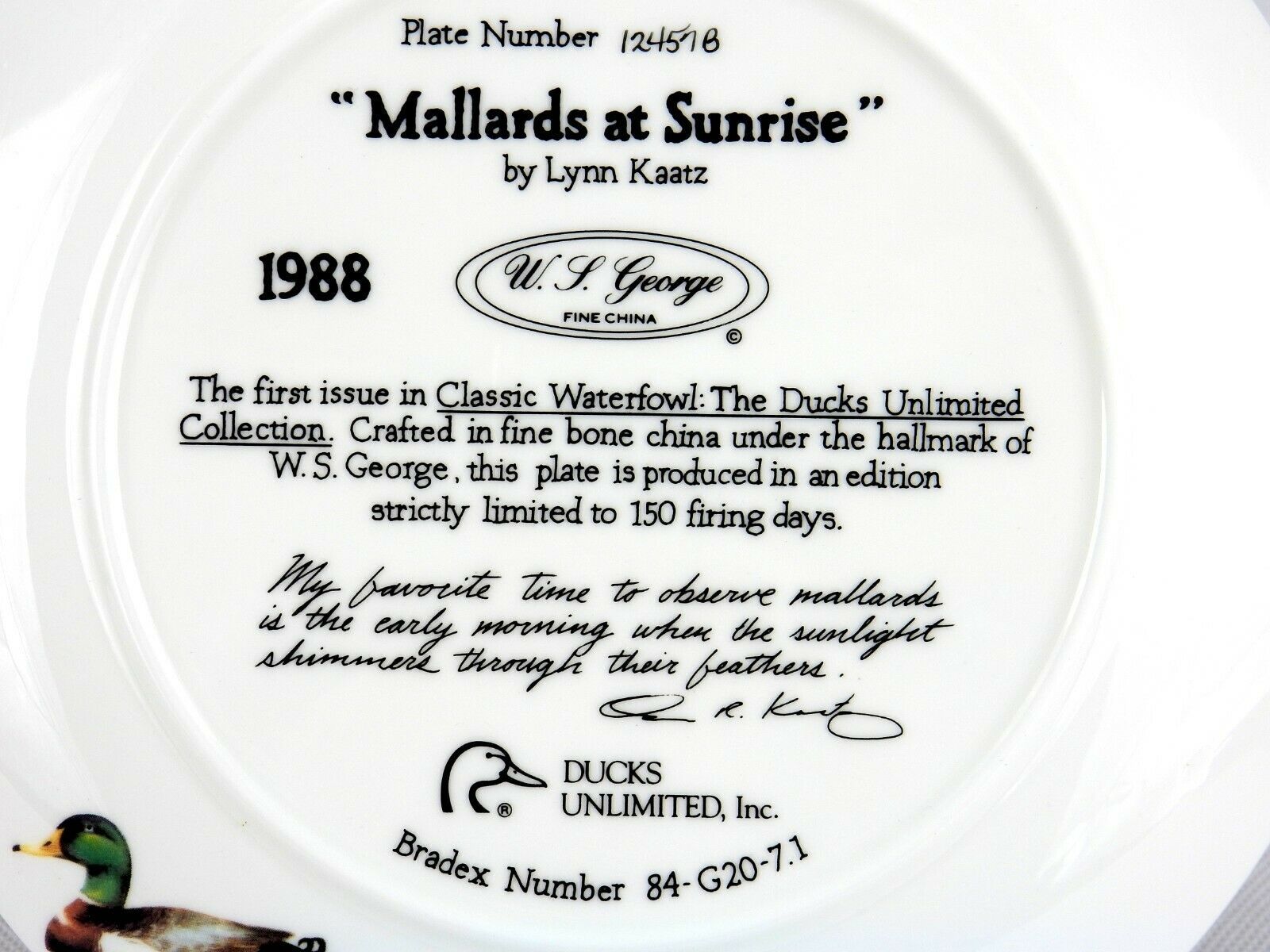 "Mallards at Sunrise" 1988 Collector Plate, WL George, By Lynn Kaatz, #12457B
