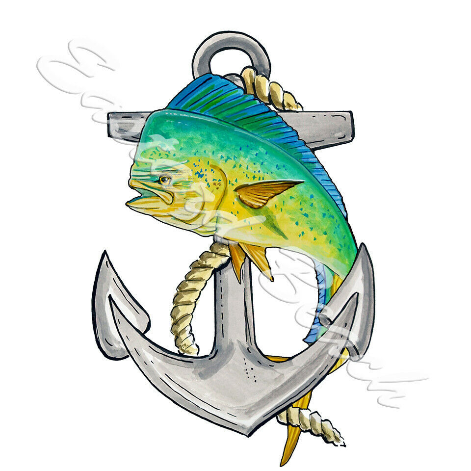 Anchor and Mahi Dolphin Vinyl Decal Sticker and similar items