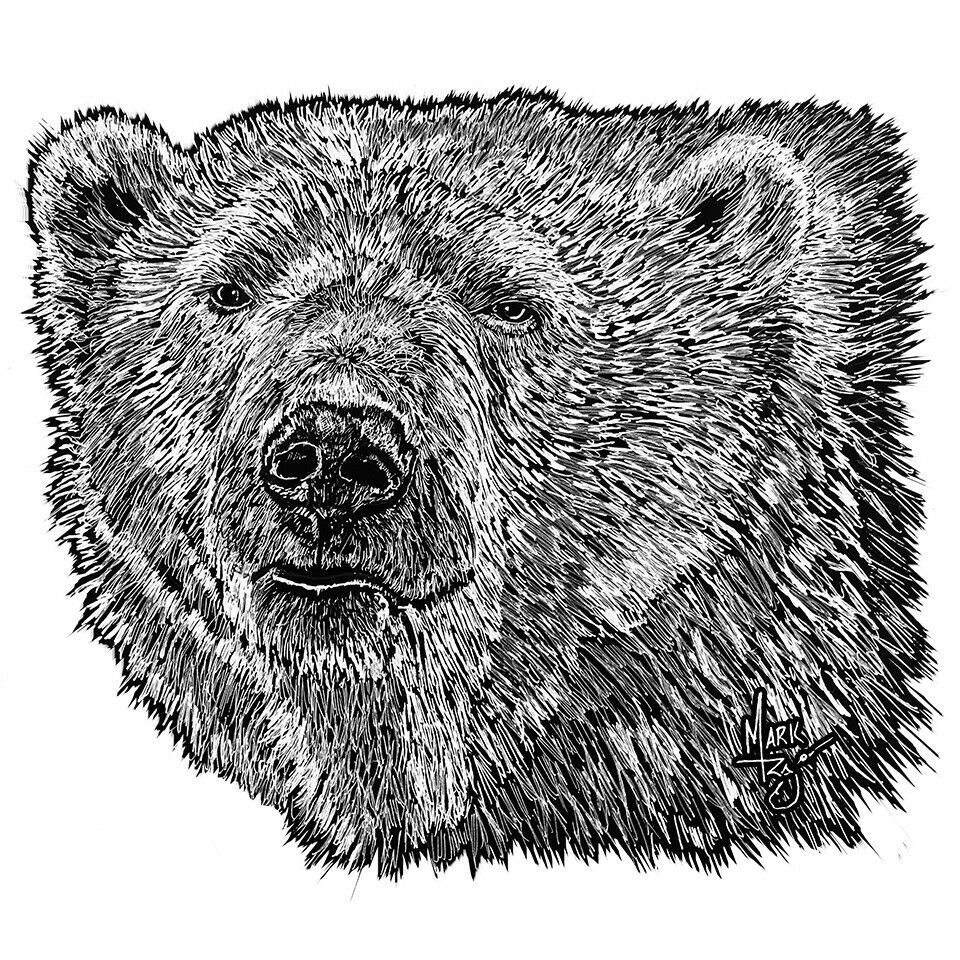 Grizzly Bear - Pen Ink Vinyl Decal Sticker - Car Truck SUV Tumbler Laptop