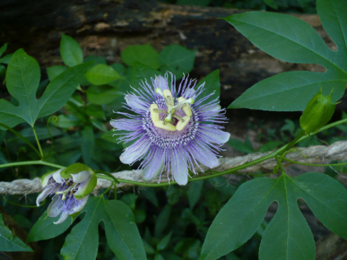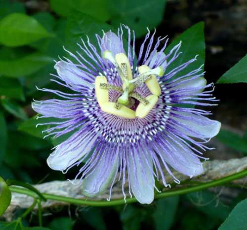 The Wild Passion Flower is an unusual vine that is native to the Southeastern United States. It is a true passion flower species but unlike most passion flowers, which are tropical vines, the wild passion flower is a perfectly hardy species that is frost tolerant and can be grown in northern regions. It is hardy in USDA zones 5-11. Passiflora incarnata is a rapid-growing, tendril-climbing vine. It typically occurs in sandy soils, low moist woods and open areas. Features three-lobed, dark green leaves and showy, 2.5" diameter, fringed flowers having white petals and sepals and a central crown of pinkish-purple filaments. Flowers bloom in summer and are fragrant. Fleshy, egg-shaped, edible fruits called maypops appear in July and mature to a yellowish color in fall. Ripened maypops can be eaten fresh off the vine or made into jelly. Maypop is also a common name for this vine. Maypop name refers to the loud popping sound made when fruits are stepped on.