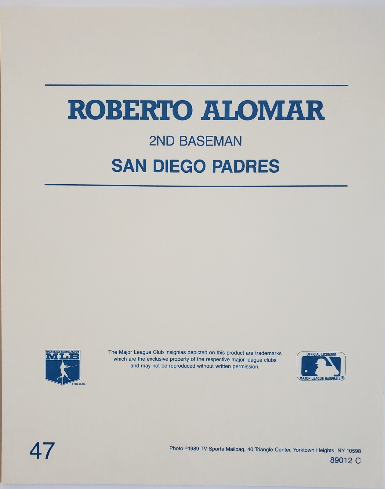 1989 TV Sports Mailbag 8 x 10 Roberto Alomar #47 San Diego Padres 2md Baseman