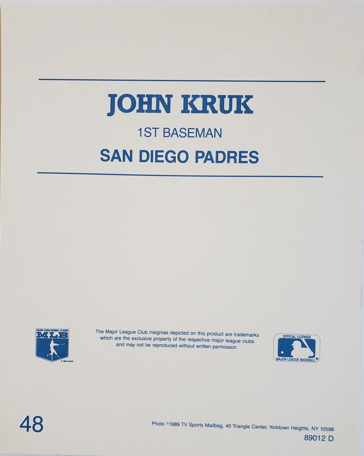 1989 TV Sports Mailbag 8 x 10 John Kruk #48 San Diego Padres 1st Baseman