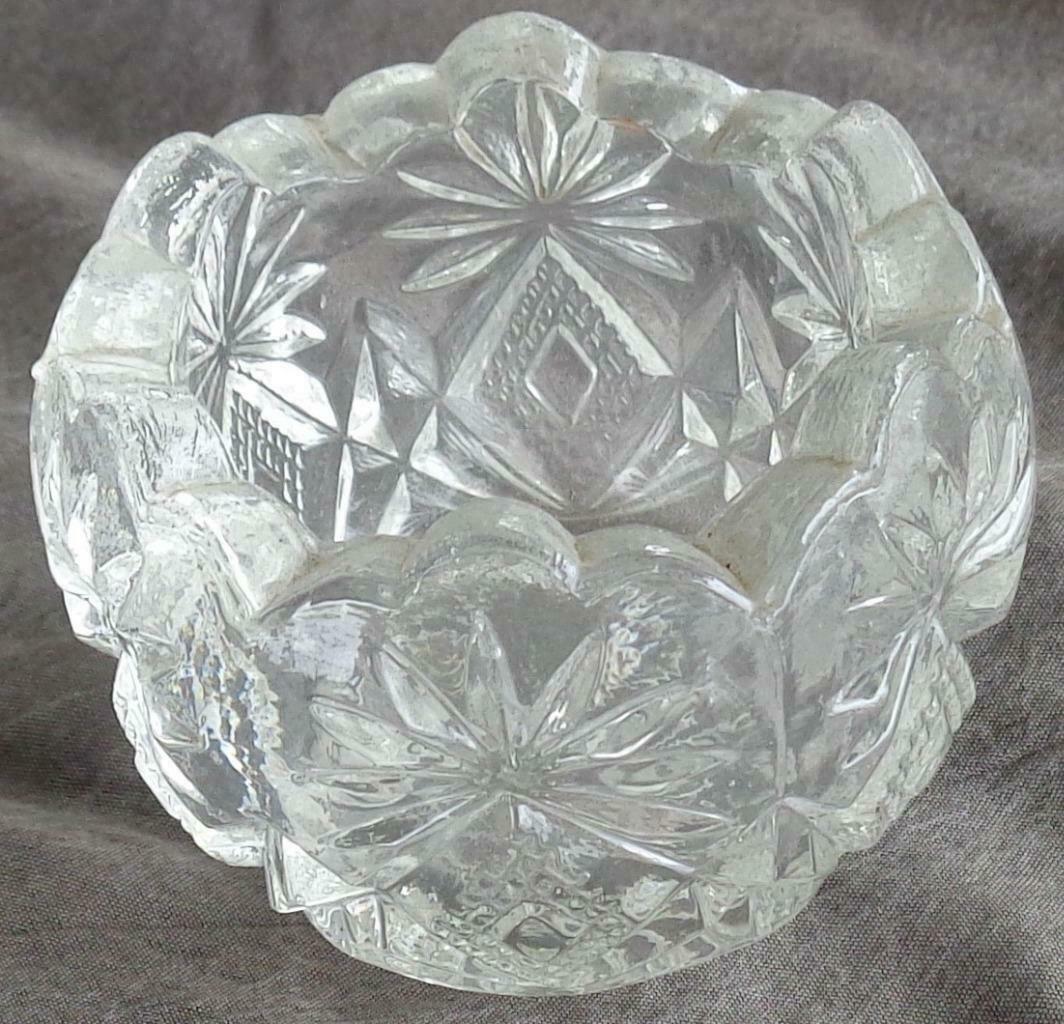 Antique Pressed Glass Open Salt Cellar - VGC - PRETTY DIAMOND PINEAPPLE DESIGN