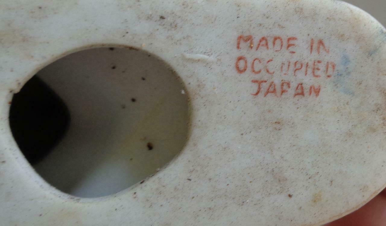 Offered here is this very cute ceramic figurine from Occupied Japan. I am unsure of the exact age of the piece, but it must date most likely to the late 1940s or early 1950s. It is in very good condition with no chips or cracks. It is of boy sitting on a rock playing a recorder or some type of horn or flute. It has a very nice classic look. The figurine is 3.5" tall, 2.5" long, and about 1" wide. It is a very cute little antique figurine that would make a very nice addition to any knick knacks collection.