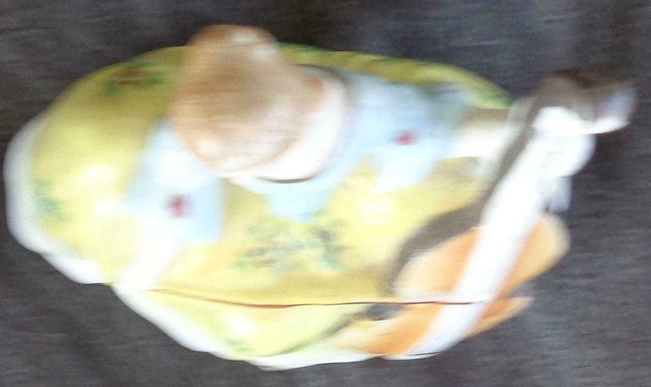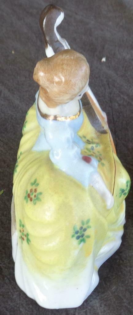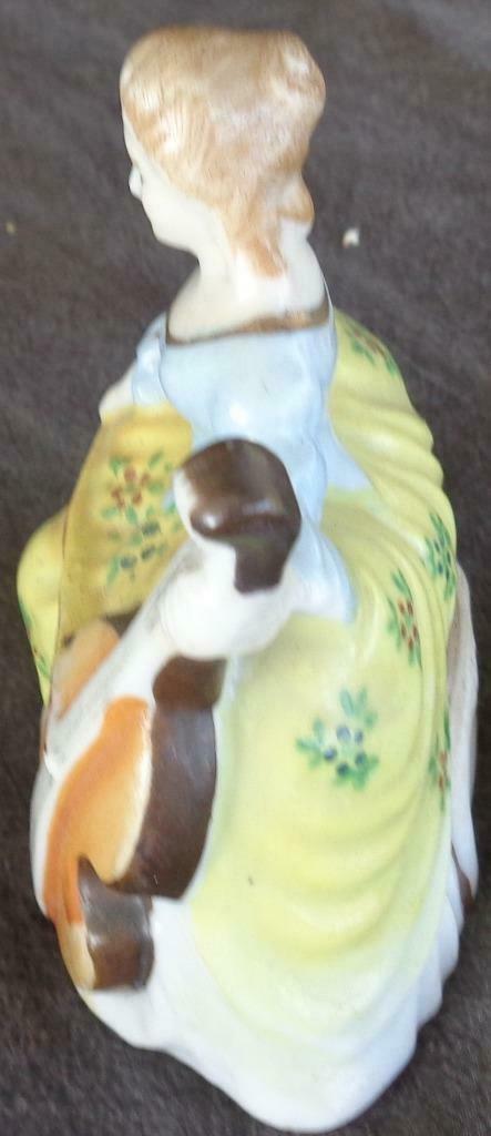 Offered here is this Vintage Ceramic Figurine of a woman dressed in Early 19th Century Dress, playing The Cello. The figure is in good condition, with no chips, however, there is one superficial crack on the front of the dress and cello. I am unsure of the exact age of the figure, but it looks quite old. It was made in Occupied Japan, which would date it to most likely the late 1940's. It is 3.25" tall, 3" across,, and 1.75" front to back at the base. It is a very cute, old little ceramic figurine. It would be a very nice addition to any antique or collection. It could be a fabulous collector's item for someone who plays the cello.