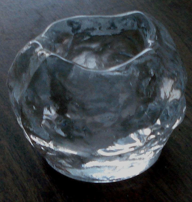 You are bidding on this nice lead crystal votive candle holder, made in Austria. It is made to resemble melting ice, and is in very good condition, with no chips or cracks, although there are a few light scuffs on it, and it is a bit dusty and will need to be washed. I am unsure of the age of the piece. It would be great for either a votive or tea light candle. It is 2.5โ to 2.75โ tall, about 4โ in diameter, and the opening in the center for the candle is about 2โ in diameter. This is a lovely lead crystal candle holder, and would be beautiful when lit.