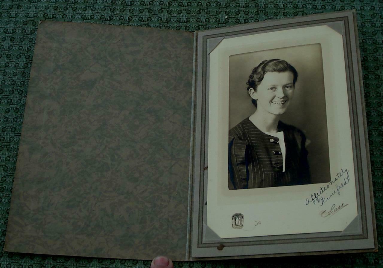 You are bidding on this nice vintage black and white cabinet card photo, in the original photographers folder and almost looks sepia tone. The photo and folder are both in very good condition, with only some light wear and scuffs on the cover, and some small tears along the edges of the folder. The photo has been well protected and is in very good condition. The photo is date stamped 34. The photo itself is 8โ top to bottom by 5โ side to side. The folder is 9.25โ top to bottom, 6โ side to side, and opens up to 12โ side to side. This is a very nice antique cabinet card photograph of a very nice looking woman.
