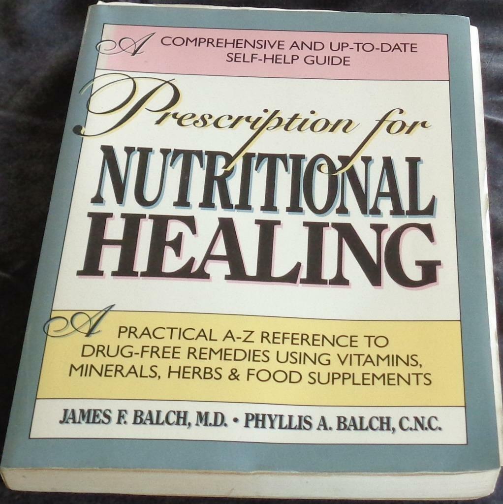 Offer here is this Soft Cover Edition of Prescription for Nutritional Healing, by James F. Balch, M.D. and Phyllis A. Balch, C.N.C. It is in very good condition, with only light wear at the corners and edges. It is a paper back edition, with a copyright date of 1990, published by Avery Publishing Group, Inc. It is 368 pages long including index. It is a nice book, with a Practical A-Z Reference To Drug-Free Remedies Using Vitamins, Minerals, Herbs, Food Supplements.