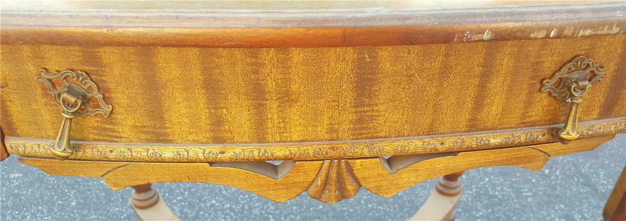 Offered here is this Fabulous Victorian Solid Wood Library Table with Drawer. The detail and design of this table is absolutely beautiful. The finish is very worn and there are a lot of dings and scratches to it as well. I am unsure if it's exact age, origins, or of the wood that was used to make it, although I believe that it may be maple. It has a lovely design and is in sturdy, stable condition in spite of the fact that the finish is very worn and scratched. I believe that it dates to the late 19th century. The table stands 30" tall is 48" long, and 28" deep. The original hardware is still on the table drawer. This is an absolutely amazing relic from the Victorian era that is a must-have for any antique collection.