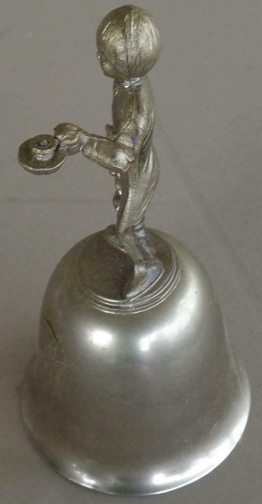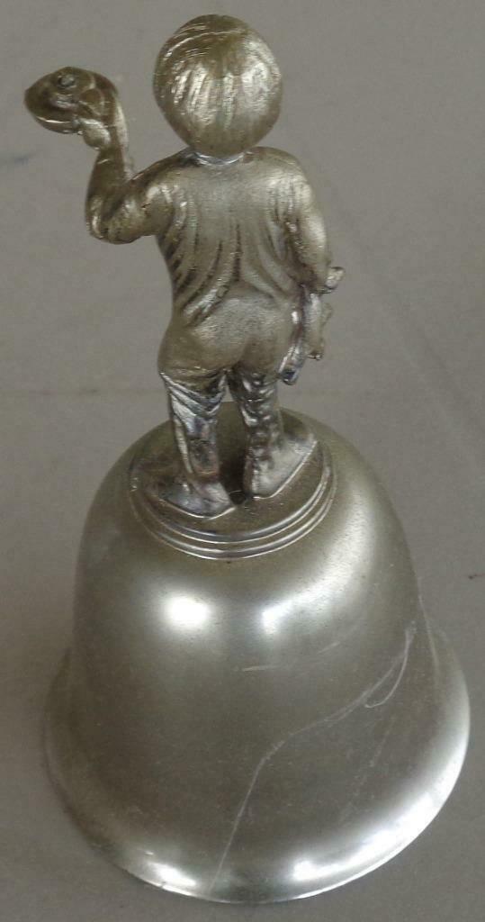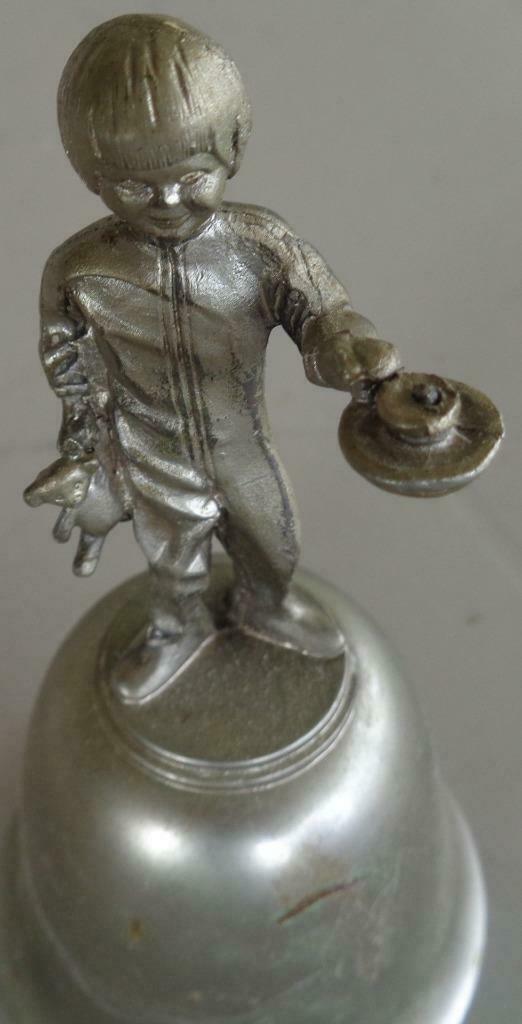 Offered here is this very nice vintage pewter collectible Bell Danbury Mint. The Bell is dated 1976. It is in good condition, but does have some scrapes and dings to the outer finish. The bell handle is shaped like a little boy carrying a Candlestick and a teddy bear. The Bell is made of pewter, I believe. It is 4.5" tall, and 2.25" in diameter at the base of the Bell. It is a nice collectible Danbury Mint Bell from 1976. It is a must have for any bicentennial collectible.