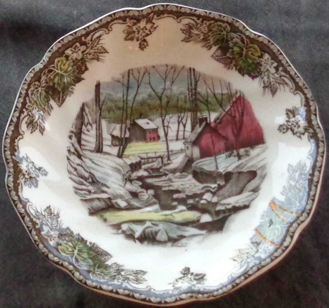 Offered here is this Fabulous Vintage Johnson Brothers Saucer in The Friendly Village Pattern. The saucer features The Ice House. The saucer is in very good condition with no chips or cracks. I am unsure of the exact age of the saucer, however, this pattern dates from1953 and was discontinued in 2003. The saucer is 5.75" in diameter and is slightly concave. It is a very nice vintage Johnson Brothers saucer that would be great to use during the holiday season.