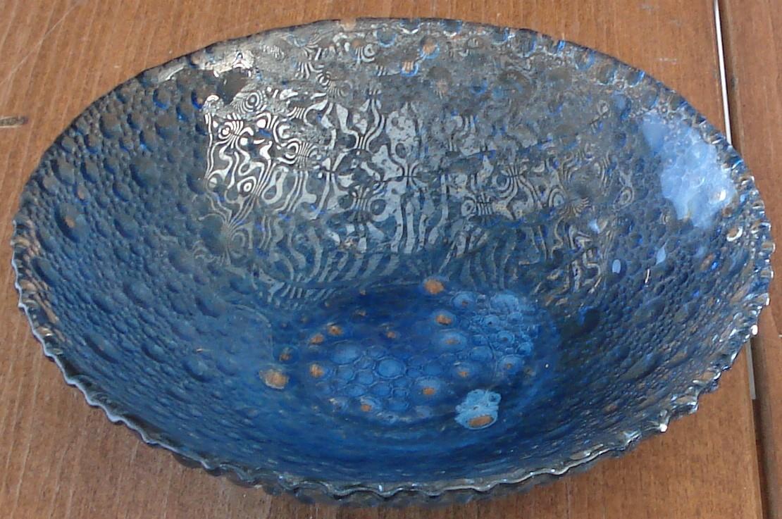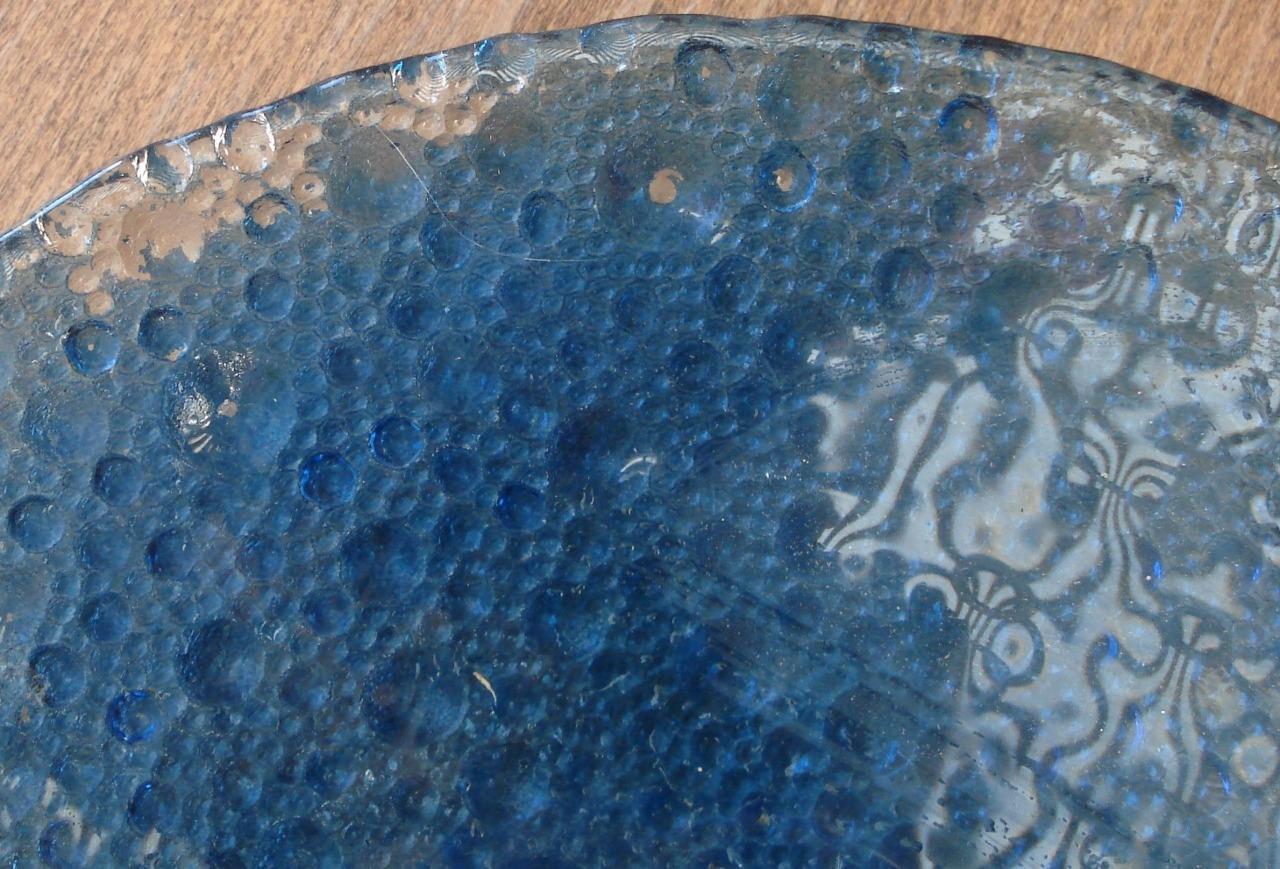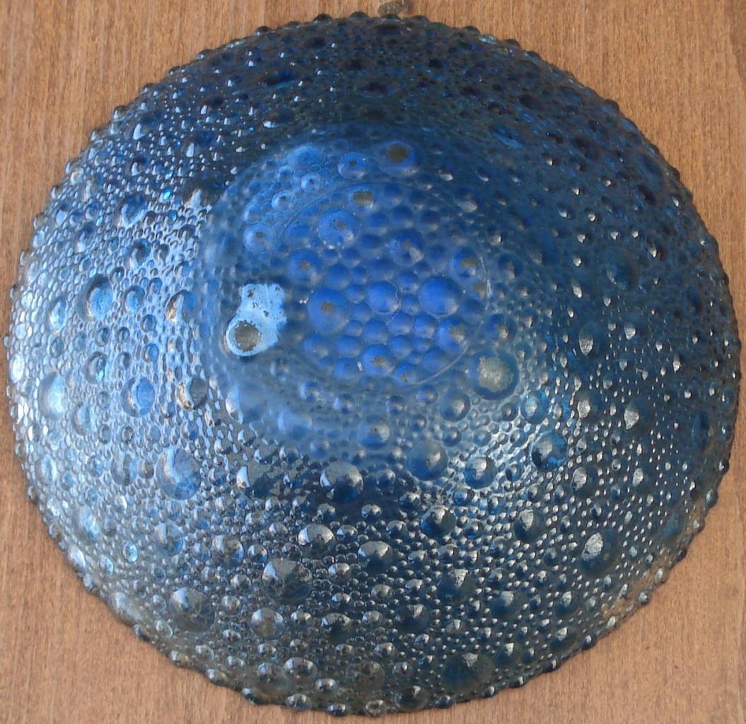 Vintage Pressed Glass Salad Bowl - Bubble Pattern - Flashed Blue Color - VGC