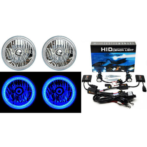 THIS LISTING IS FOR A NEW PAIR (2 bulbs) OF 7" 12 VOLT HIGH/LOW BEAM 6000K HID HEADLIGHTS WITH BLUE SMD 45-LED HALO ANGEL EYE RINGS. THESE HALO RINGS ARE EXTREMELY BRIGHT AND CAN EASILY BE SEEN DURING THE DAY AND NIGHT EVEN WITH THE HEADLIGHT ON. THESE HEADLIGHTS HAVE GLASS LENSES. THESE ARE A NIGHT AND DAY DIFFERENCE IN BRIGHTNESS COMPARED TO STOCK BULBS. THIS SET INCLUDES 2