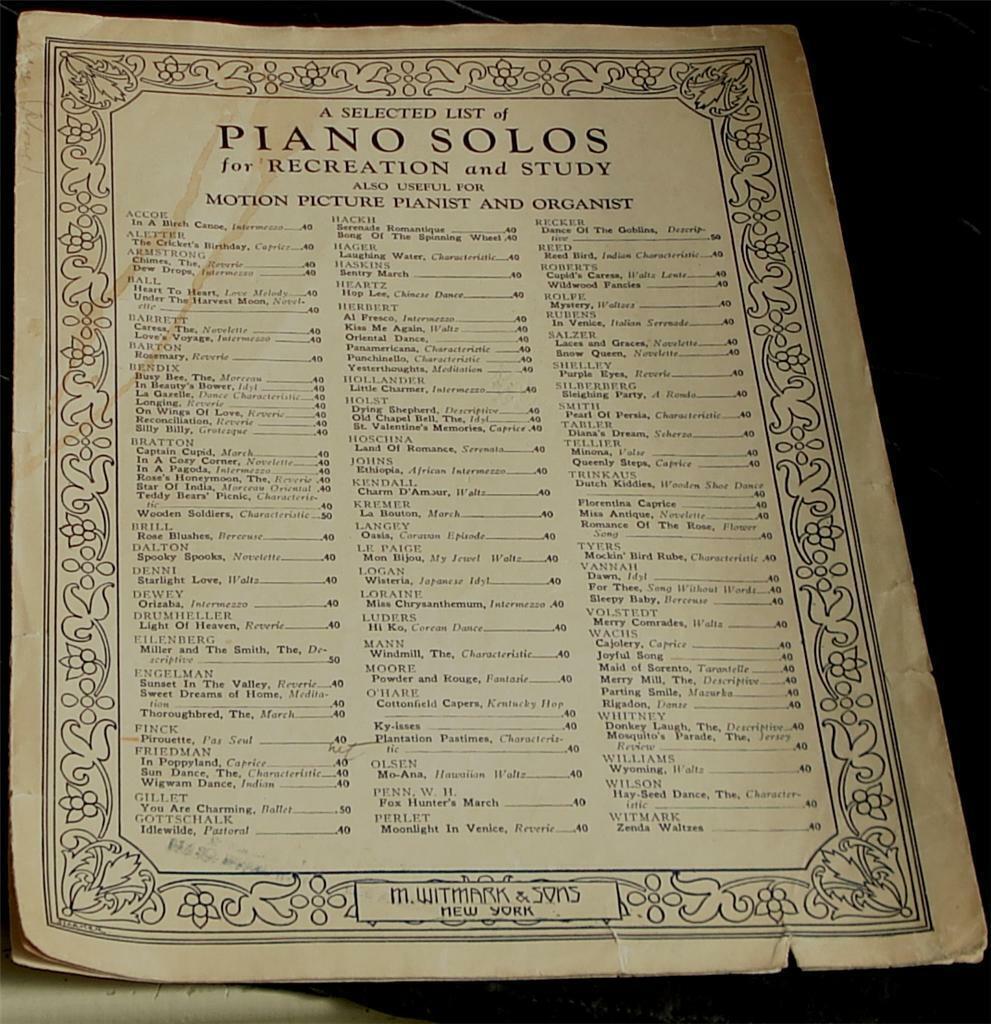 You are bidding on this great old piece of sheet music Pirouette, pas Seul, by Herman Finck. It has a copyright date of 1911 on it, and was published by and was published by M. Witmark Sons. It is in good condition, for its age. There are also some scuffs and light stains the music as well. The music is 5 pages long. There are many tears along the edges, and there are pencil and pen notations throughout the music. The music is very yellowed with age, and the front and back covers are almost torn completely away from each other. This is a great, very old piece of sheet music in need of some TLC, and still a great find.