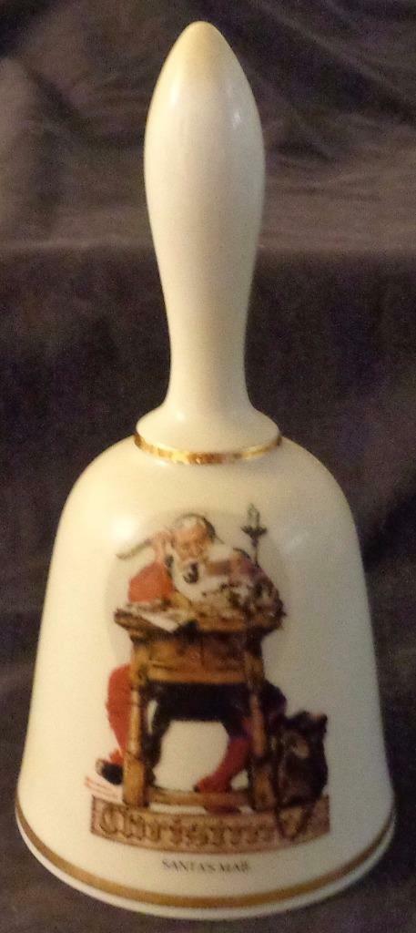 You are bidding on this nice Gently Used Danbury Mint Porcelain Collector's Bell, From Norman Rockwell's Santa's Mail, with COA. It is used, and in excellent condition, with no chips or cracks, and very little sign of wear. The bell is titled Santa's Mail, and is dated 1977. It was made in West Germany. The bell is 7.5" tall including the handle, and 3.5" in diameter, and is a bit dusty so it will need a little cleaning. It is a nice collector's bell, from a trusted maker, and a wonderful item to have for any Norman Rockwell collector.