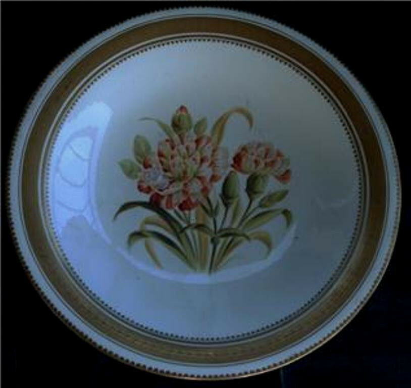 For consideration today is this very lovely footed china serving plate. It is in very good condition, with no chips or cracks, and only a couple of flea bites on the bottom. It is a little dusty and will need to be washed up. I do not know the age or origin of the plate, and there is no backstamp, or other clue as to it's maker. It is a very nice plate, though, and it looks older. It has what looks like a hand painted floral design in the center, and painted gold accents. The gold is beginning to wear off around the edges. It is all one piece, and stands 3.25" tall, is about 4.5" in dimaeter at the base, and the plate is 9.5" in diameter. It is gorgeous, and unique in its design.