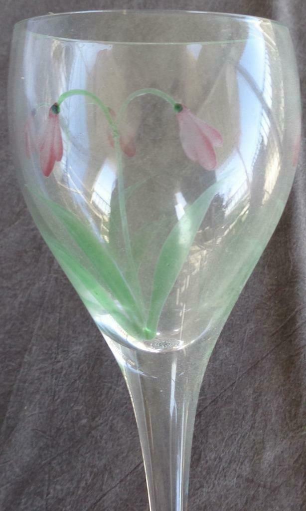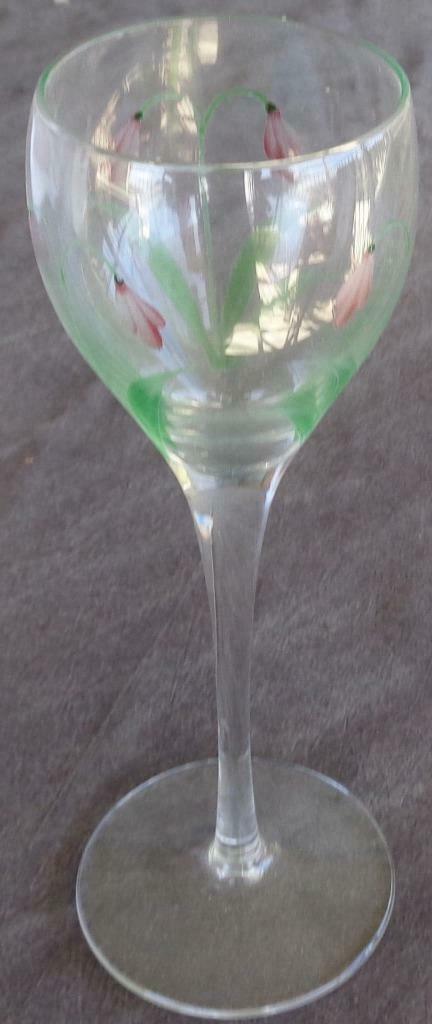 Offered here is this Beautiful Vintage Long Stemmed Crystal Cordial Glass. It is in fabulous condition, with no chips or cracks. I am unsure of it's exact age, but it was hand crafted in Romania. It has a beautiful, delicate hand painted pink and green floral design on it. It is 7" tall, 2.25" deep, 2" in diameter at the top rim, and 2" in diameter at the base. It is a bit dusty and will need to be washed. I would imagine that it is a hand wash only item. It is a beautiful, vintage delicate crystal stemmed cordial.