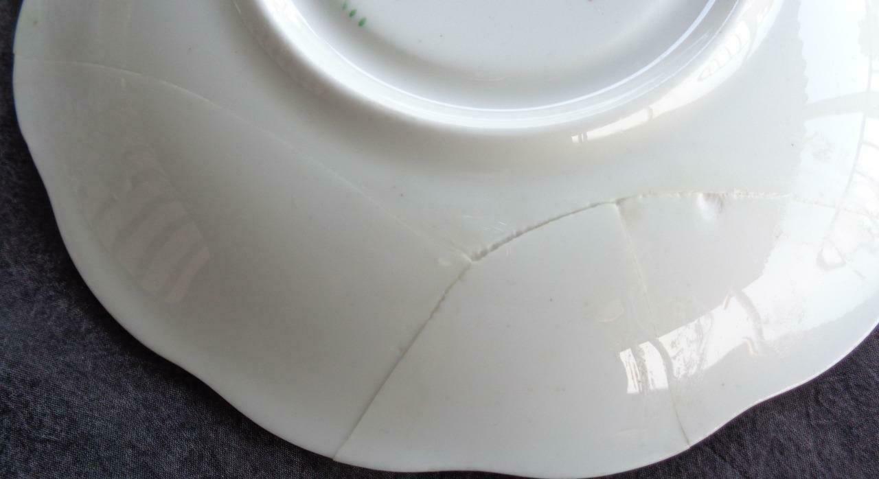 Offered here is this Beautiful Vintage Royal Standard Saucer. It is unfortunately cracked. It was actually broken and has been repaired, but the cracks from this repair can still be seen. The gold accents and trim are in excellent condition showing very little wear. I'm unsure of the age of the saucer, but it was made in England. It 5.75" in diameter. It is a beautiful vintage Royal Standard saucer in fabulous condition and would be an excellent addition to any collection.