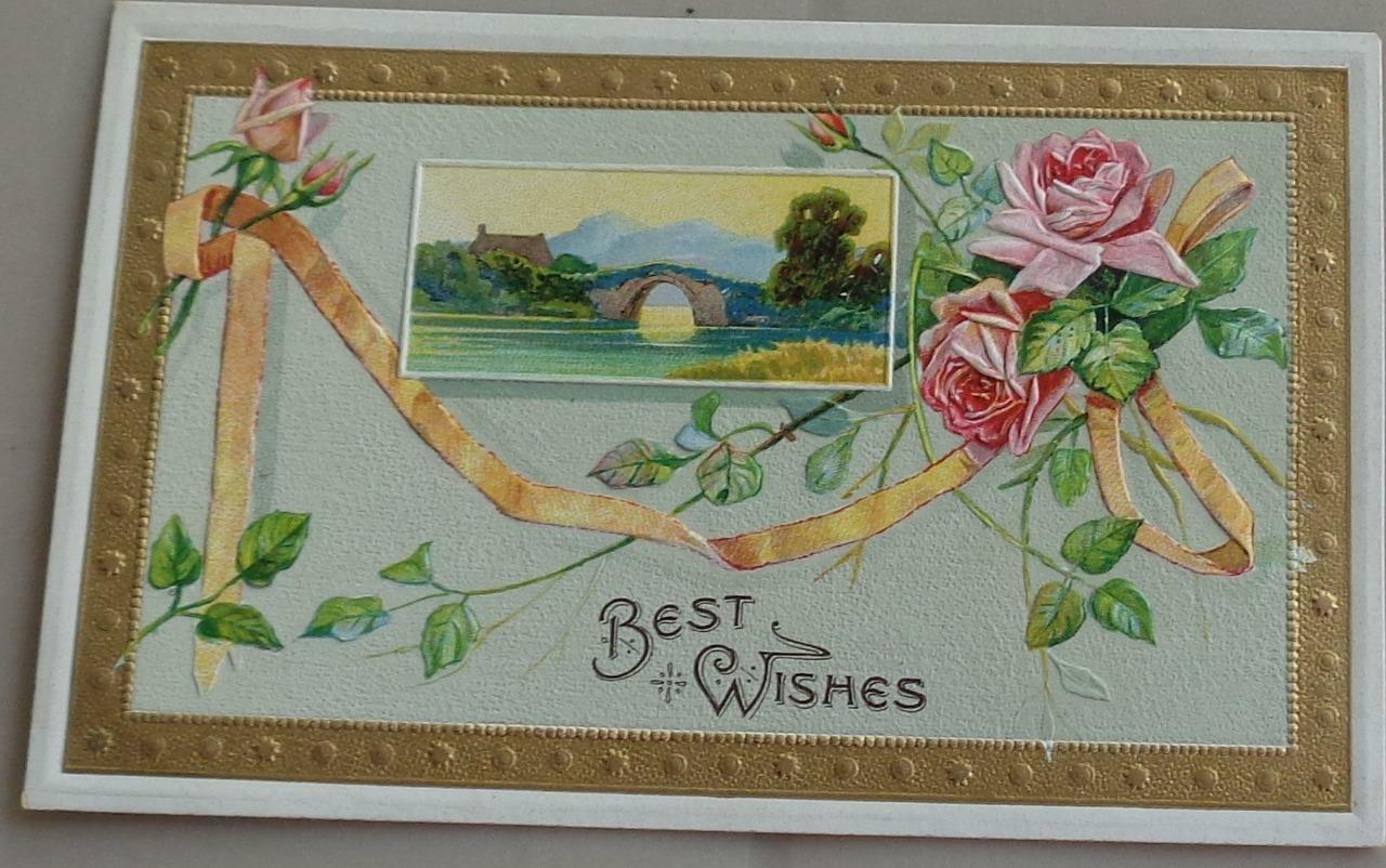 Wonderful Vintage Embossed Postcard Best Wishes VGC - NICE CARD - BEAUTIFUL 1909