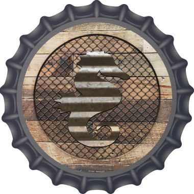 Corrugated Seahorse on Wood Novelty Metal Bottle Cap BC-1040. Made of the highest quality aluminum for a weather resistant finish. It is lightweight and durable. Pre-drilled holes for quick and easy mounting. Add a ribbon, wire or string to instantly personalize your sign. Individually shrink-wrapped and proudly made in the USA. Most orders ship within 24-48 hours.