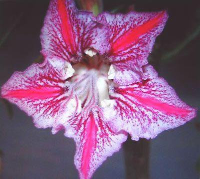Adenium obesum Dance of Butterfly, known as desert rose, a caudex plant with flowers of a wonderful color combination of white, violet and red.