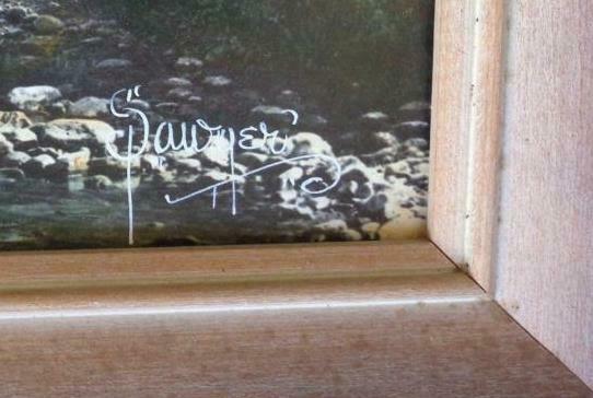 Offered here is this Very Nice Original Art Print on Art Board. It is in very good condition. The paper backing on the frame is intact, and is the original frame and backing. It proclaims that the art print has been lacquered to preserve the color, and gives cleaning instructions. The print is beautifully framed, and the frame is in fabulous condition as well, with only a few very light minor surface scratches on it. The artwork is signed Sawyer at the bottom right corner. The scene is Mount Lafayette and the Gale River. The artwork is hand colored. The entire piece measures 18" wide, and 13" tall. It is a very nice art print, vintage, and would be a lovely addition to any artwork collection. It makes a beautiful statement on the wall. It is a peaceful, serene setting.